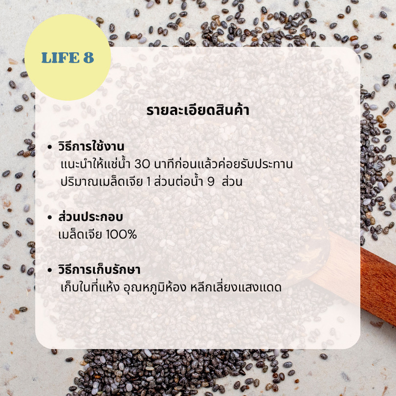 LIFE 8 เมล็ดเจีย แบบกระปุก มี อย. เกรดคัดพิเศษ Chia Seeds 200 g. 350 g. เมล็ดเชีย
