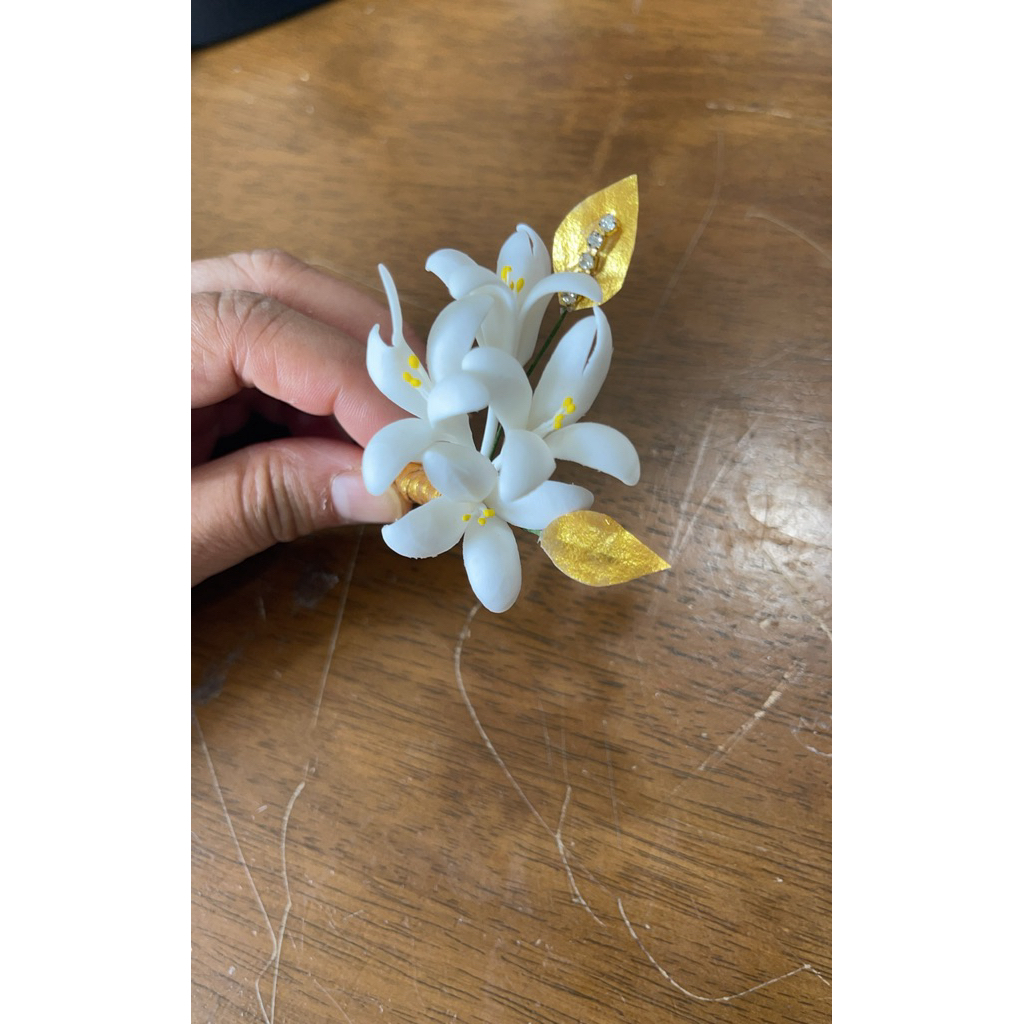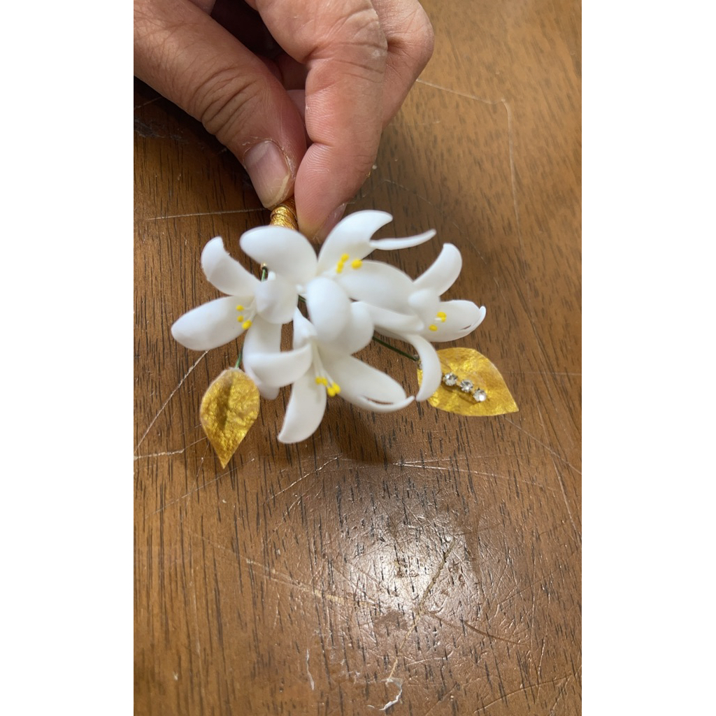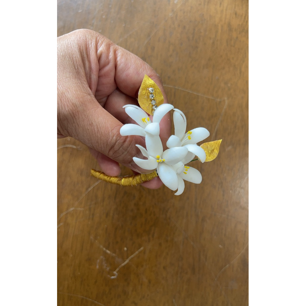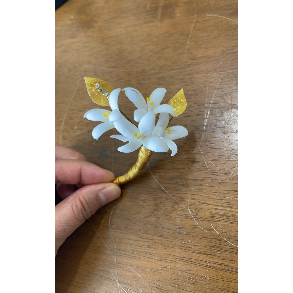 ดอกปีบดินปั้นใบสีทองประดับผม ดอกไม้ทัดหู จอนหู ดีไซน์น่ารัก ใส่ได้ทุกโอกาส