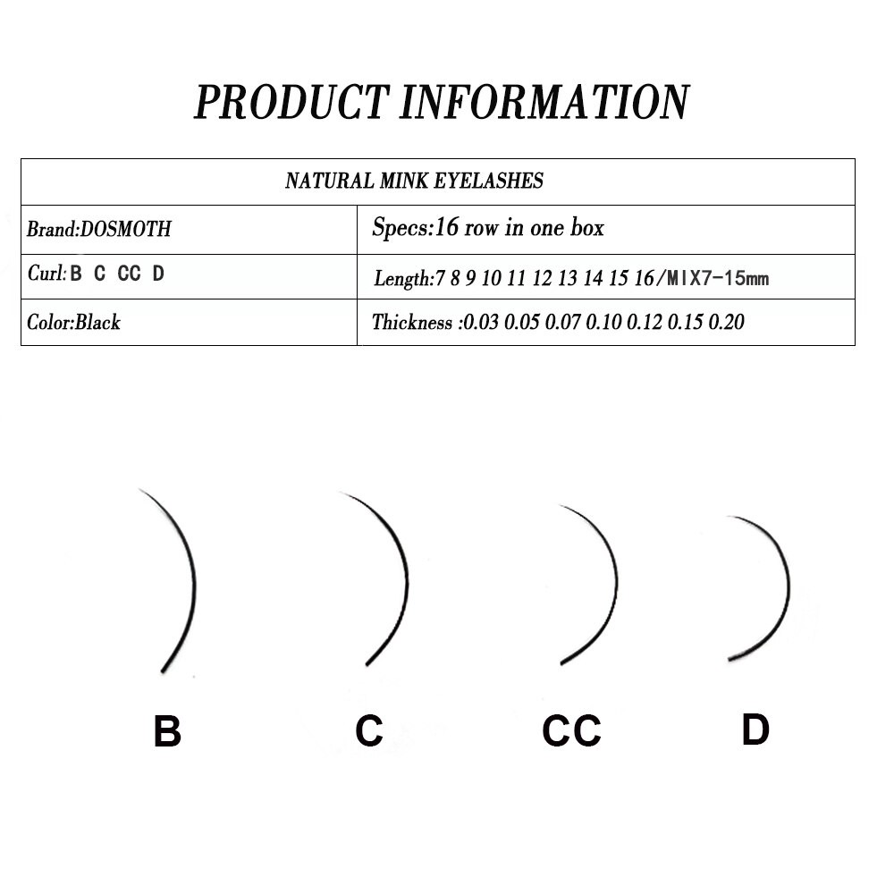 DOSMOTH 5boxes 05 B/C/CC/D16Rows eyelash extension False eyelash Extension Mink Natural