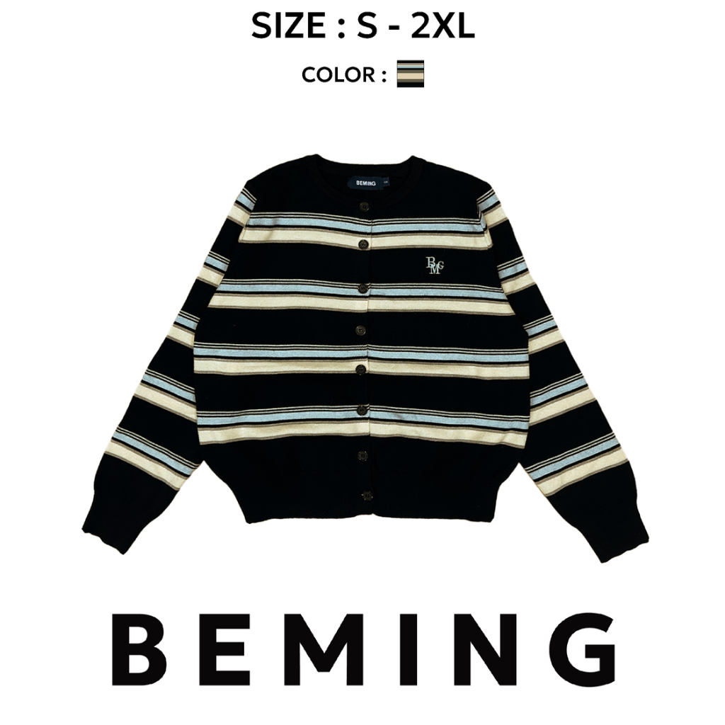 Bemingtop1043(S-2XL)-BEMING Retro Line Knit เสื้อคาดิแกนลายขวางสุดคลาสสิก เติมลุควินเทจ