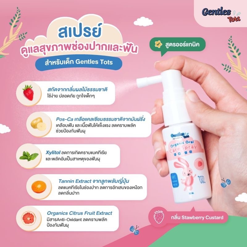 Gentles Tots สเปรย์ป้องกันฟันผุ สเปร์ยฟันออร์แกนิค สำหรับเด็ก1ปี+ คู่กับ ยาสีฟันเด็กออร์แกนิค ขนาด 8g