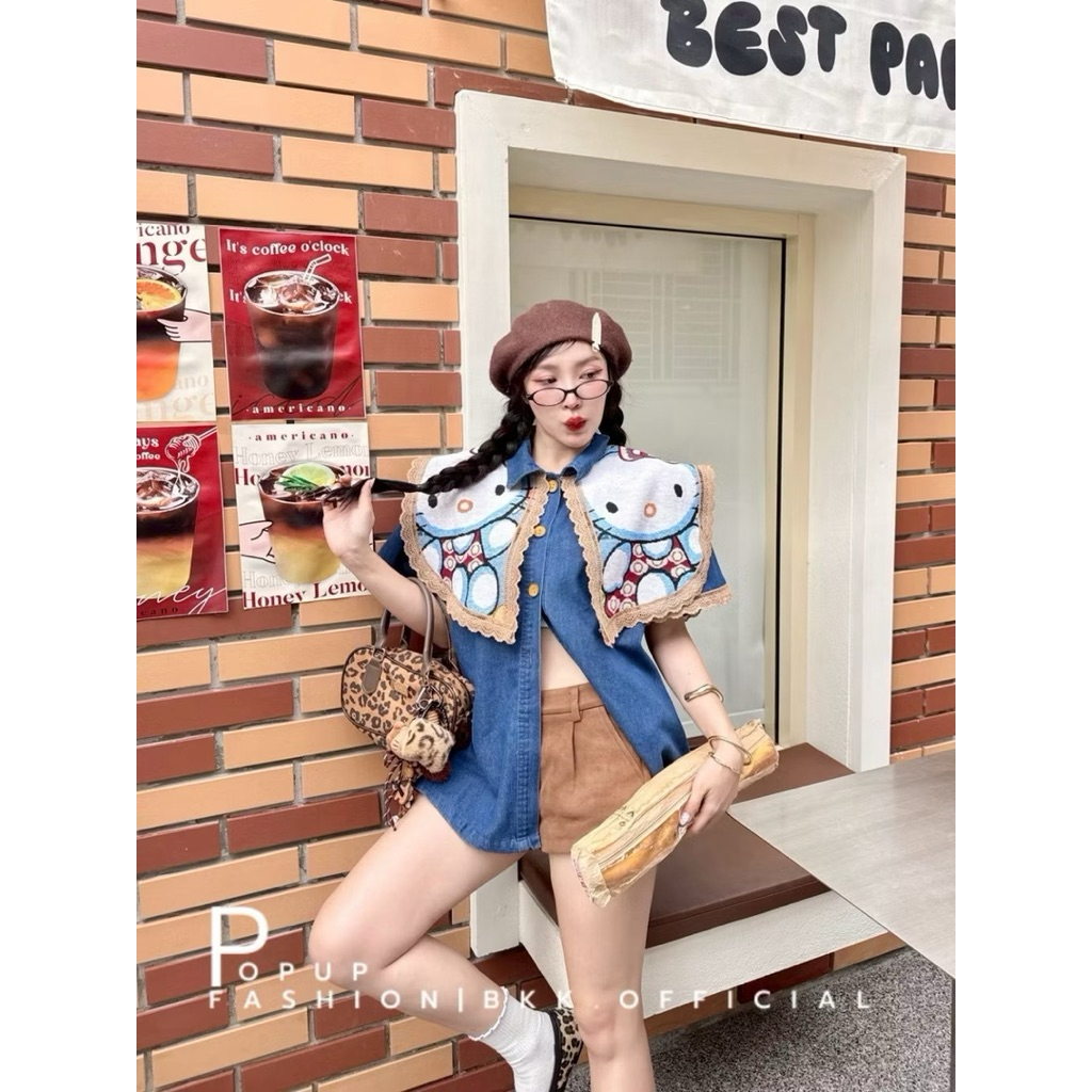 เสื้อยีนปก ผ้าทอ สไตล์วินเทจ