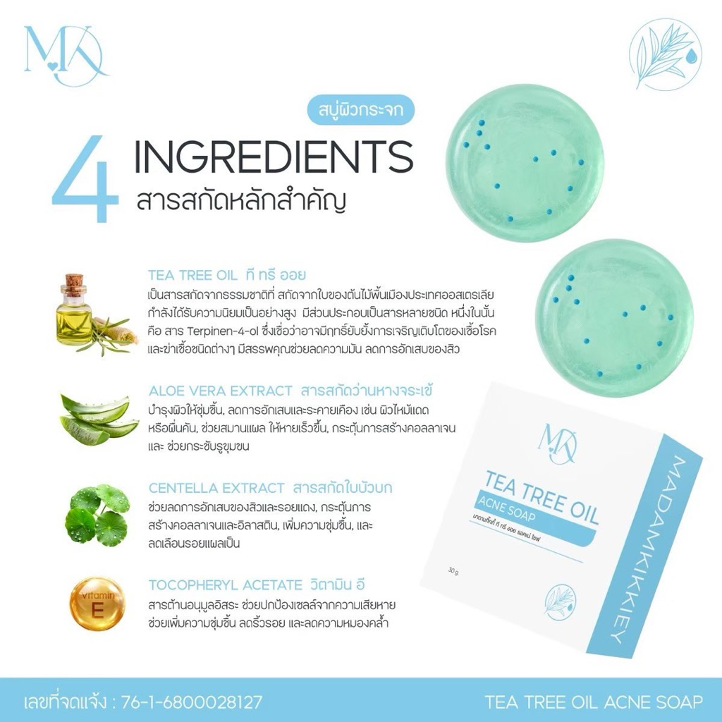 ส่งทันที : ลด 10% ในไลฟ์ ♡ สบู่ผิวกระจก TEA TREE OIL ACNE SOAP พี่กุ้งกดสิว มาดามกิ๊กกี้ MDK ขนาด 30 กรัม
