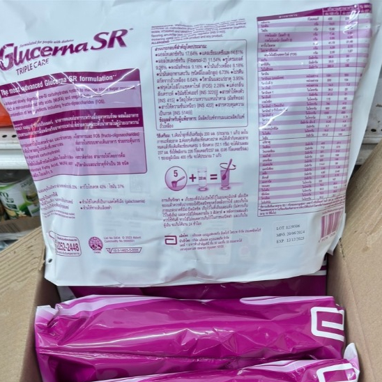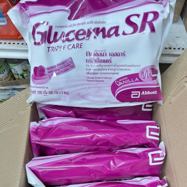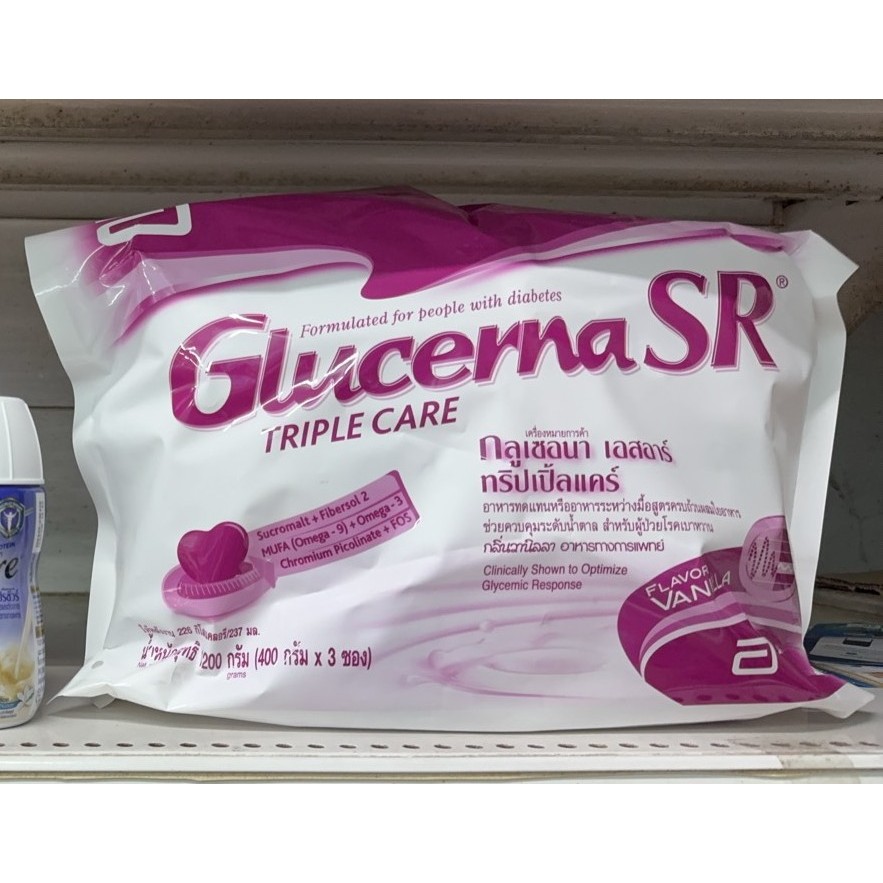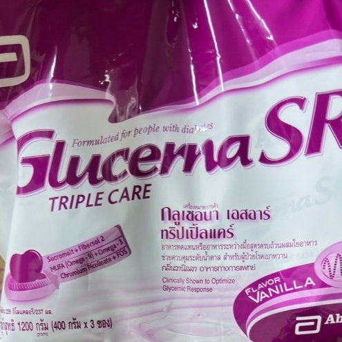 Glucerna SR 1200g Vanilla 1 ถุงกลูเซอนา เอสอาร์ ทริปเปิ้ลแคร์ กลิ่นวานิลลา ขนาด1200กรัม ด้านในมี3ถุง