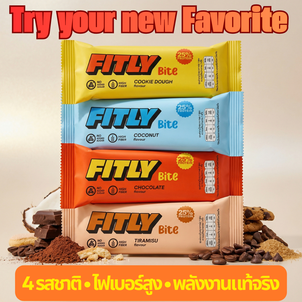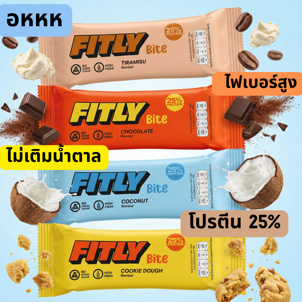 FITLY BITE Protein Bar โปรตีนบาร์ โปรตีน 25% ไม่มีน้ำตาลเติมเพิ่ม ไฟเบอร์สูง, 1 Piece, 5 pcs.