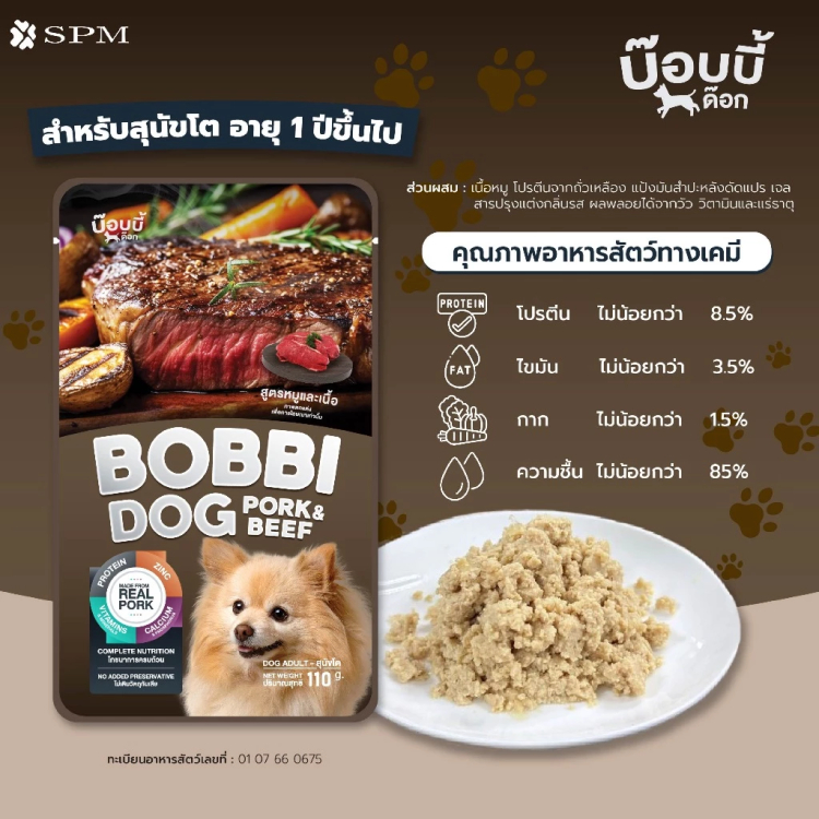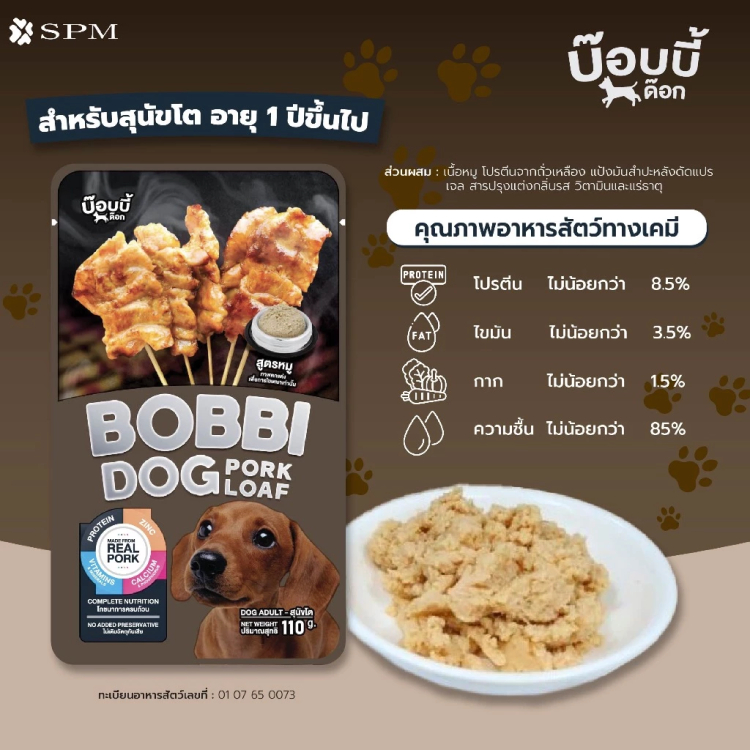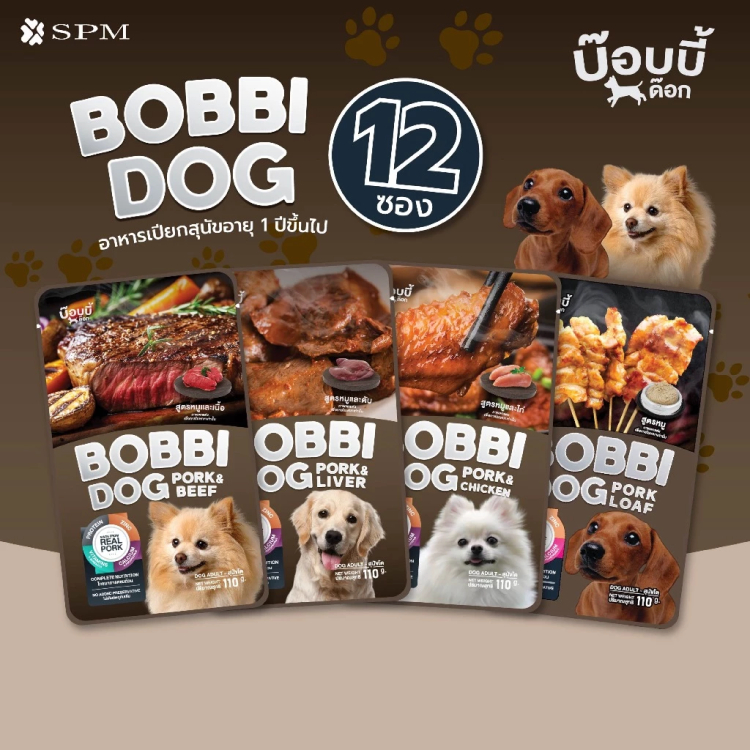 [แพ้ไก่ทานได้] Bobbi Dog อาหารเปียกสุนัข บ๊อบบี้ด๊อก สุนัขโต ทำจาก เนื้อหมู ไม่เติมเกลือ สารอาหารครบถ้วน ยกโหล 12 ซอง