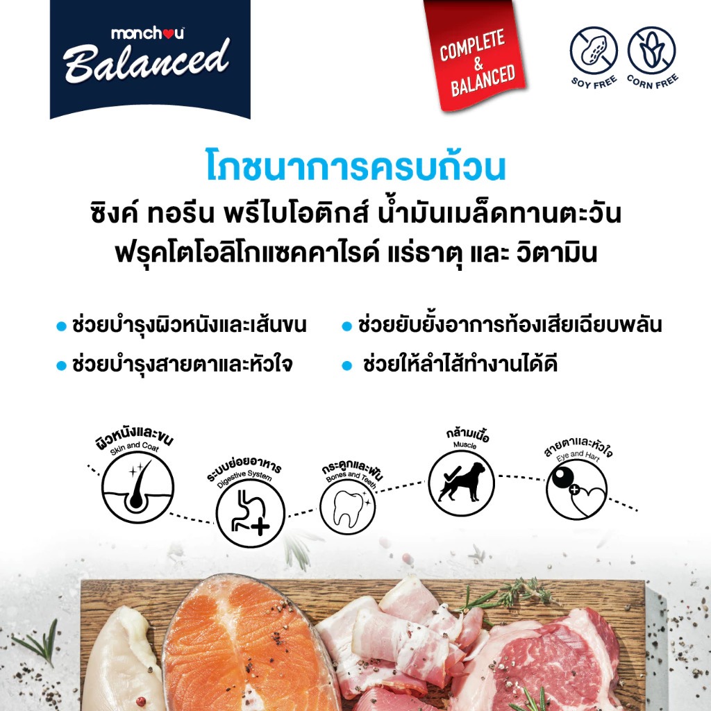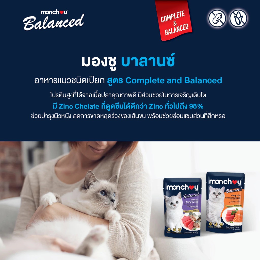 [ฟรีอาหารเม็ด 1 ซอง/กล่อง] [กล่อง x12] monchou Balanced อาหารเปียกแมว สูตร Balanced ไม่เติมเกลือ 80g