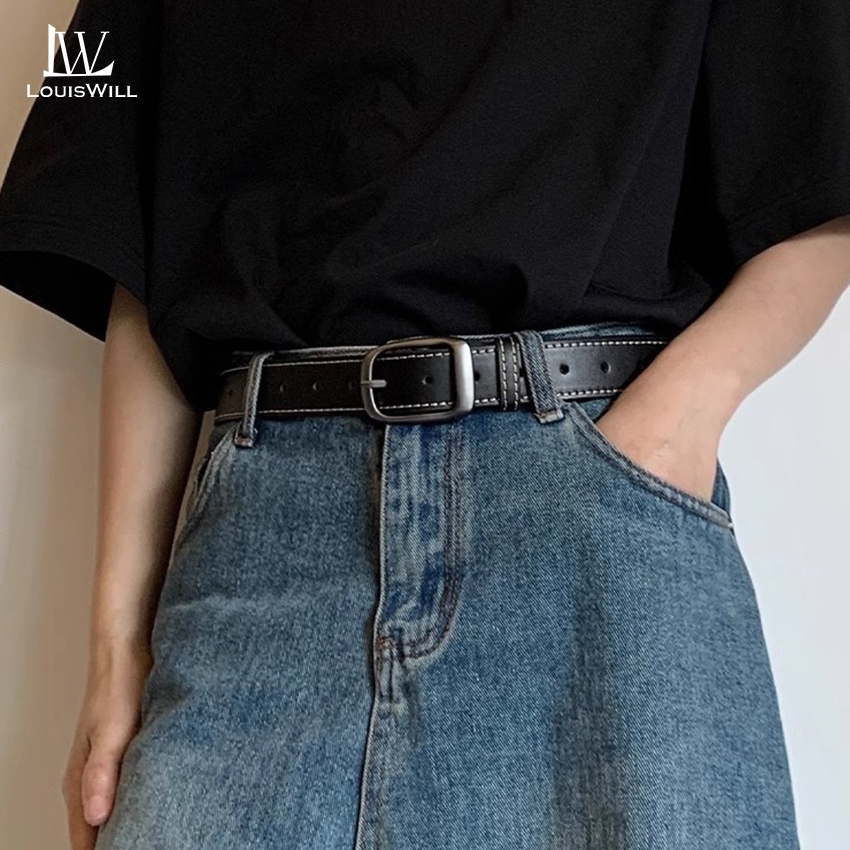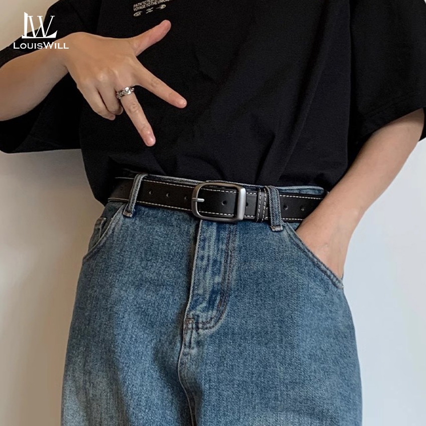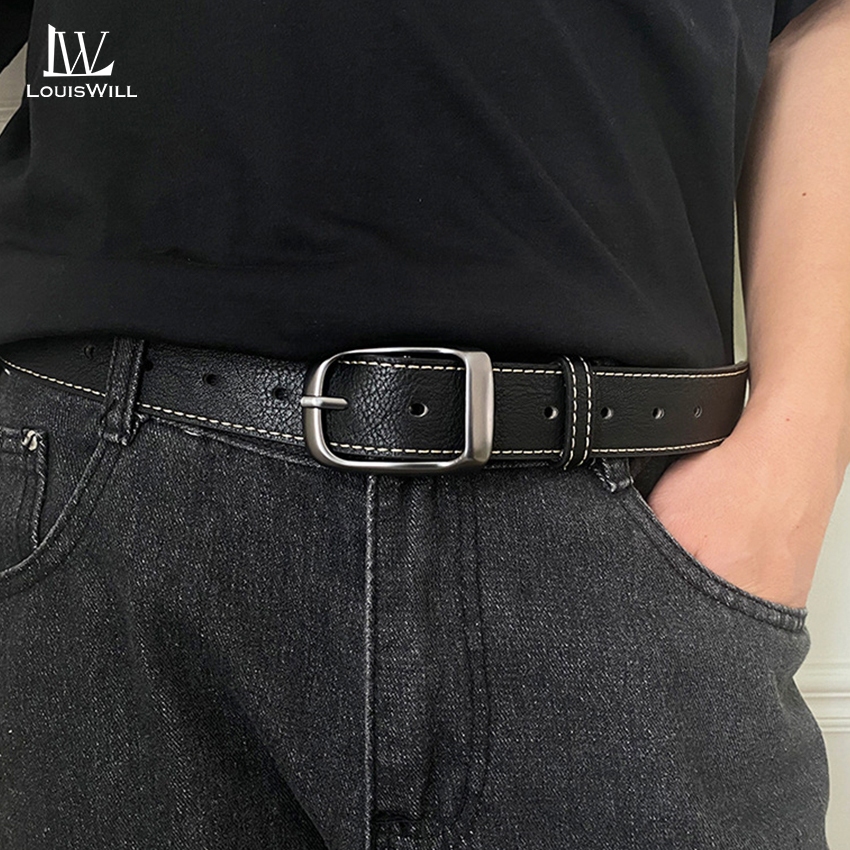 LouisWill เข็มขัดผู้ชาย แบบPUที่ทนทานต่อการขีดข่วน เหมาะสำหรับงานธุรกิจและวันหยุด ขนาด120ซม.