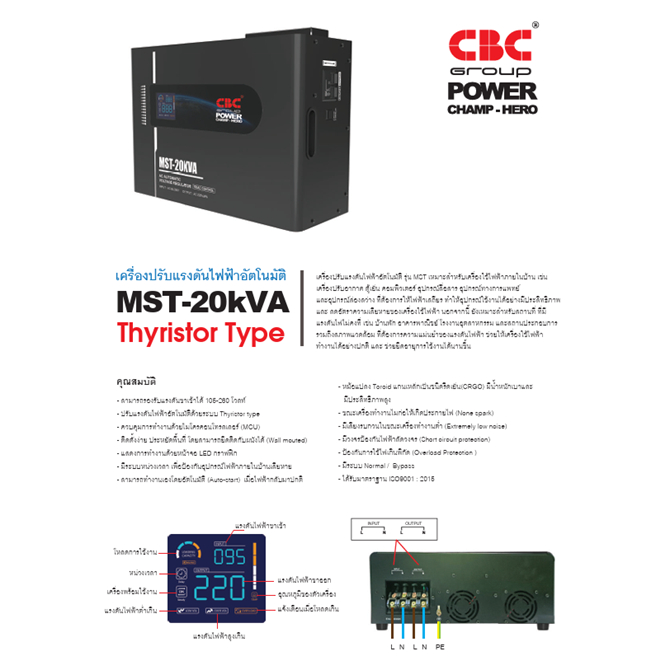 CBC เครื่องปรับแรงดันไฟฟ้าอัตโนมัติ MST-20KVA ระบบ Thyristor type ติดตั้งง่าย ประหยัดพื้นที ของแท้ศูนย์ไทย