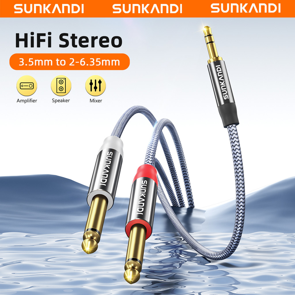 ซันคานี สายสัญญาณเสียงชาย 3.5 มม. เป็นคู่ 6.35 มม. สําหรับลําโพงขยายเสียงผสม