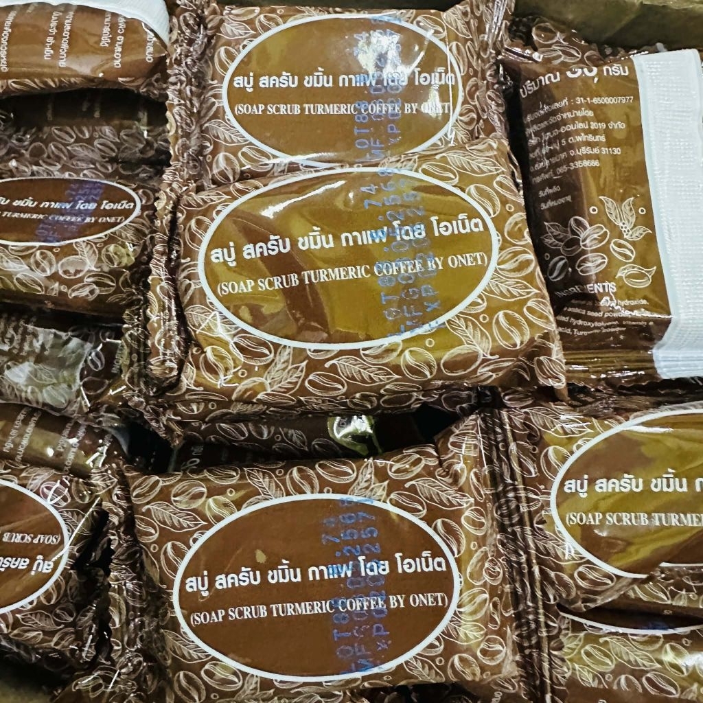 สบู่ โอเน็ต กาแฟผสมขมิ้น สครับ สิว ฝ้า ผื่นคัน onet coffee turmeric mix scrub 32g