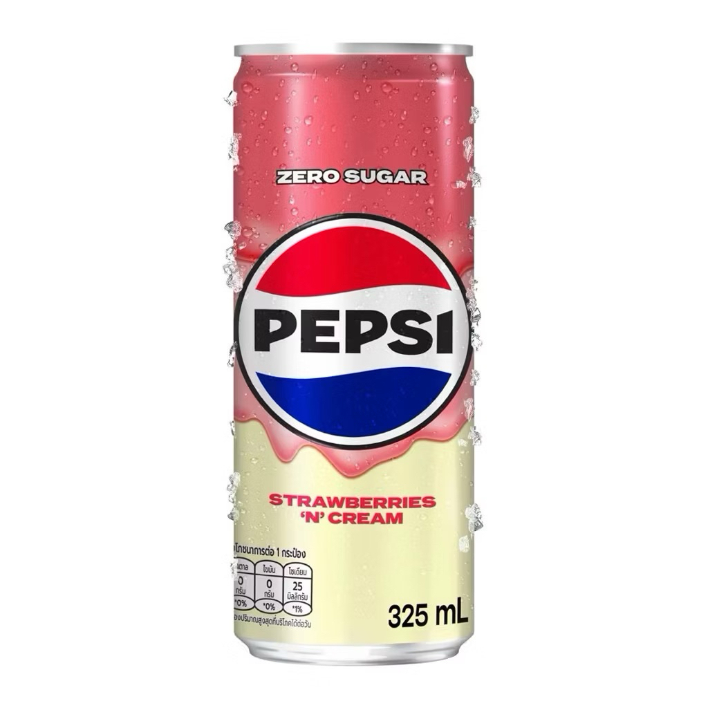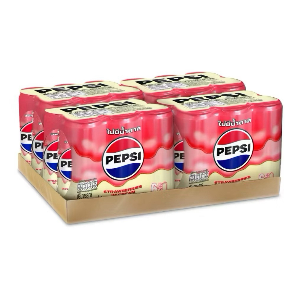 Pepsi No Sugar เป๊ปซี่ ทรีทส์ สตรอเบอร์รี่ แอนด์ ครีม 325 มล. x 6 กระป๋อง