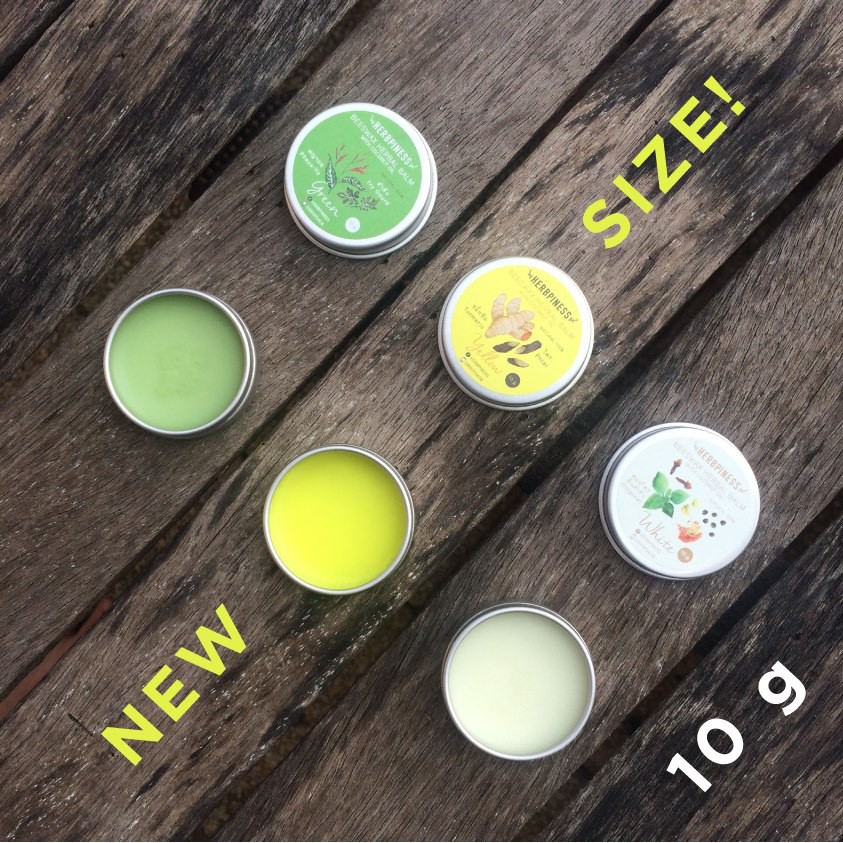 ยาหม่องขี้ผึ้ง Herbpiness ขนาด 10g. : สีขาว | สีเขียวพญายอ | สีเหลืองไพล BEESWAX BALM WHITE | GREEN | YELLOW