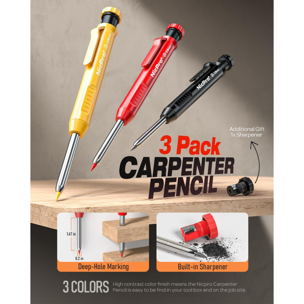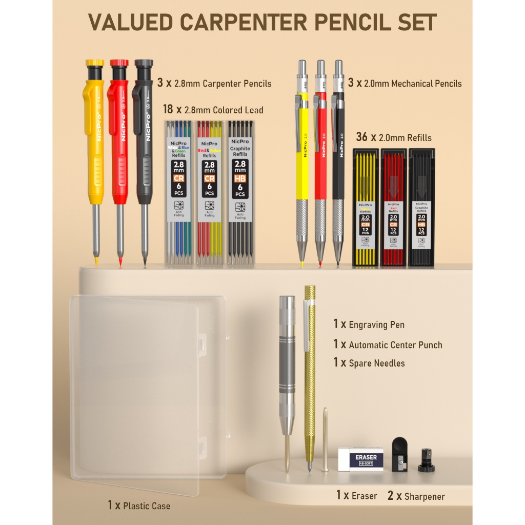 ไนซีโปร 18แพ็คช่างไม้ดินสอกล,ดินสอก่อสร้างที่มี60เติม,อัตโนมัติศูนย์หมัดและคาร์ไบด์เครื่องมือ,2.0มิลลิเมตรดินสอกลสําหรับงานไม้,ที่ดีที่สุดคาร์