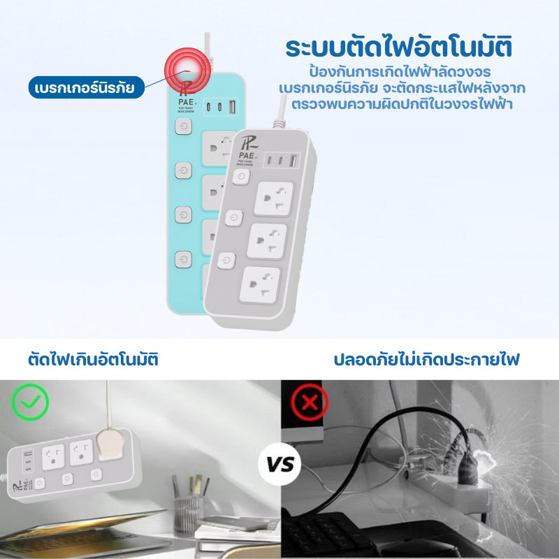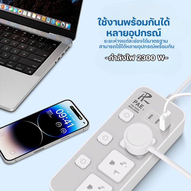 ปลั๊กไฟ ปลั๊ก มีUSB 2300W รางปลั๊กไฟ ปลั๊กUSB ปลั๊กพ่วง ปลั๊กอเนกประสงค์ หัวชาร์จUSB