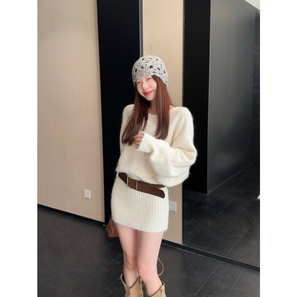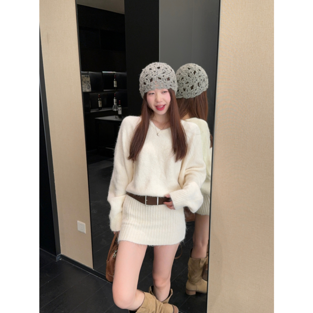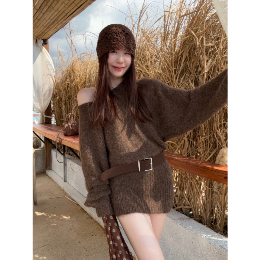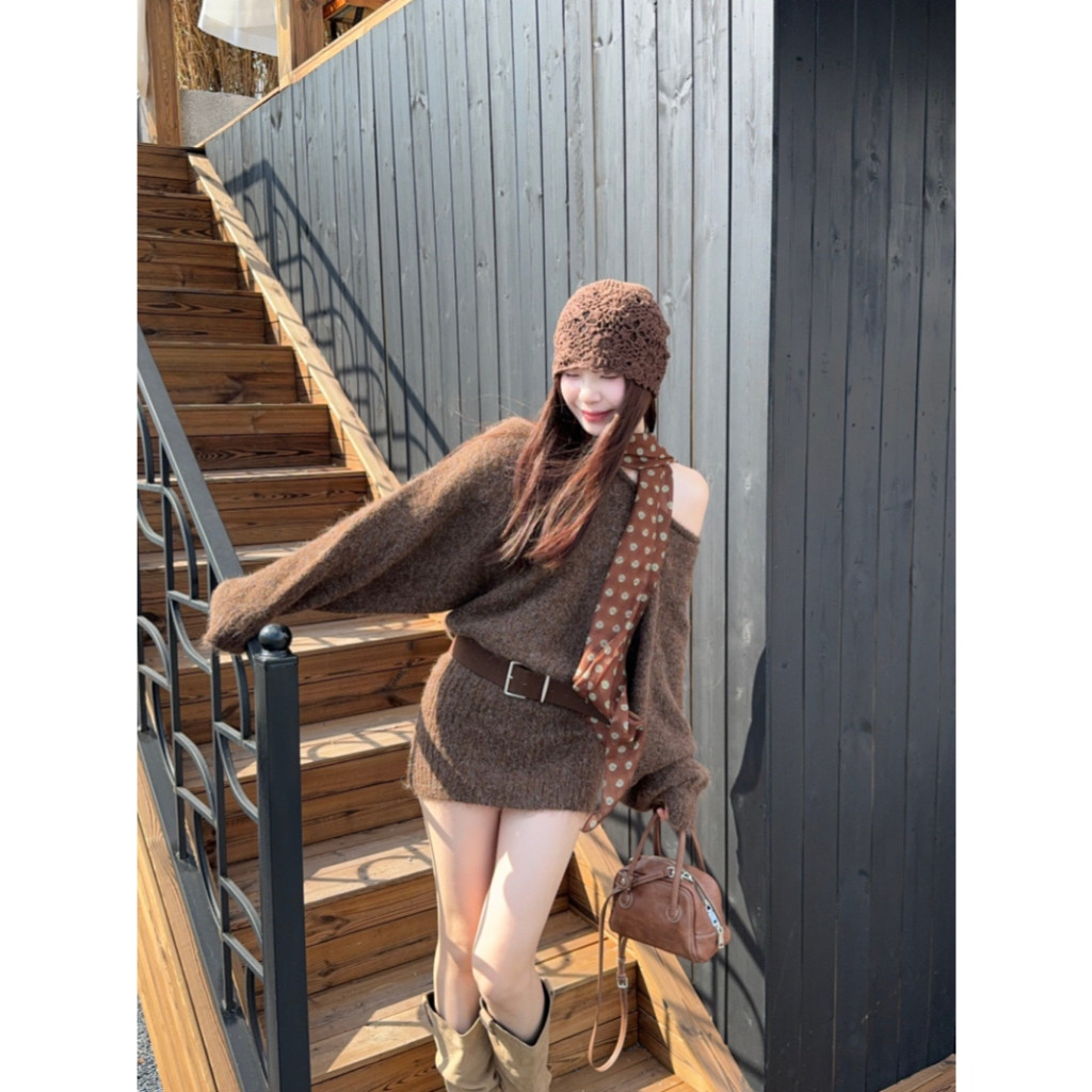 ชุดแขนยาวสีกาแฟไหล่เฉียง ออกแบบให้แคบเอว พอดีตัวสำหรับฤดูใบไม้ร่วง