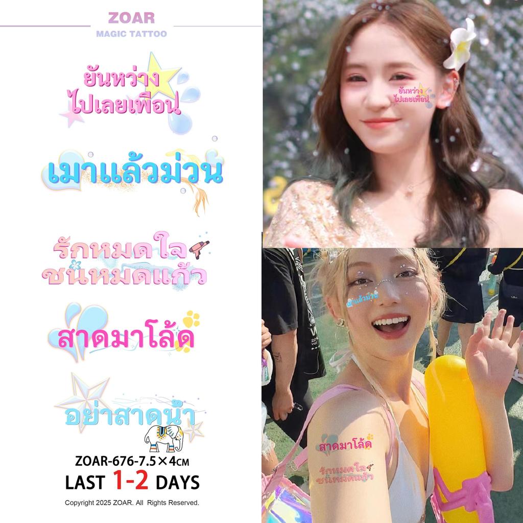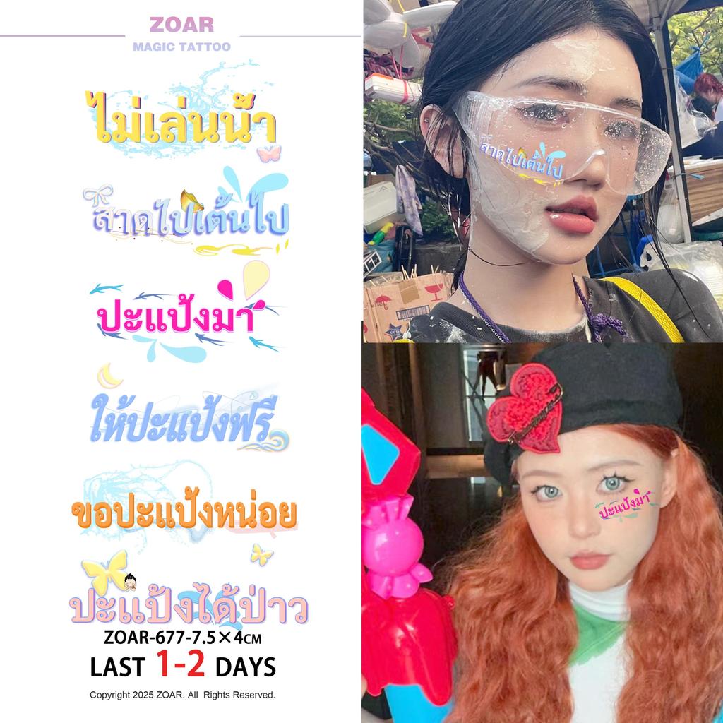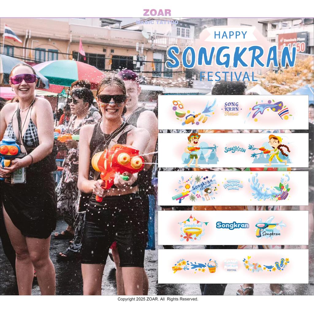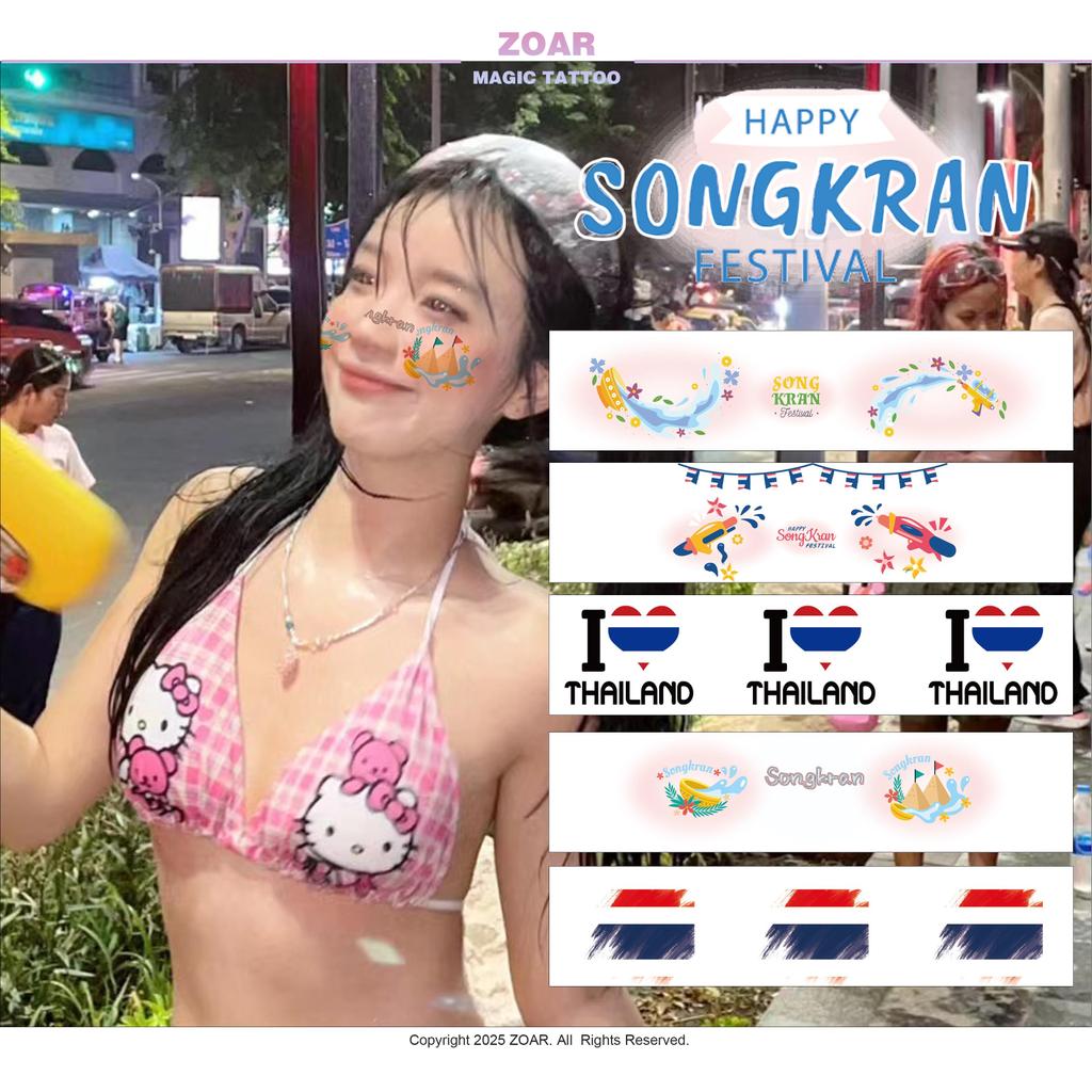 [ส่งไทย] ZOAR สติ๊กเกอร์ติดหน้าสงกรานต์ แทททูกันน้ำ ลายการ์ตูนน่ารัก รอยสักชั่วคราว ติดทน ลอกง่าย