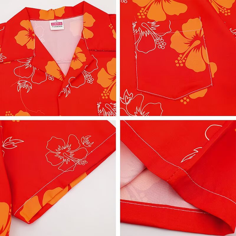 WanderVenus เสื้อเชิ้ตผู้ชายแขนสั้นสไตล์อเมริกัน ลายดอกไม้ไทยดูทันสมัย
