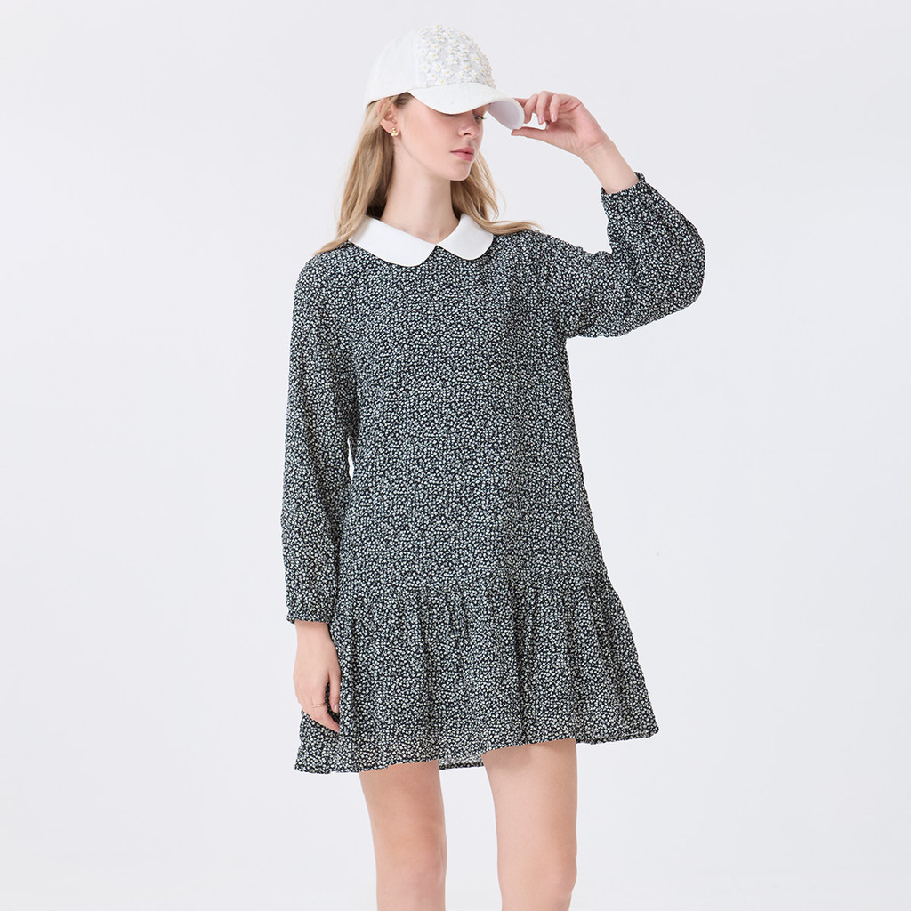 EP ชุดเดรสสั้นลายดอกไม้ ผู้หญิง สีดำ | Floral Short Dress | 05136