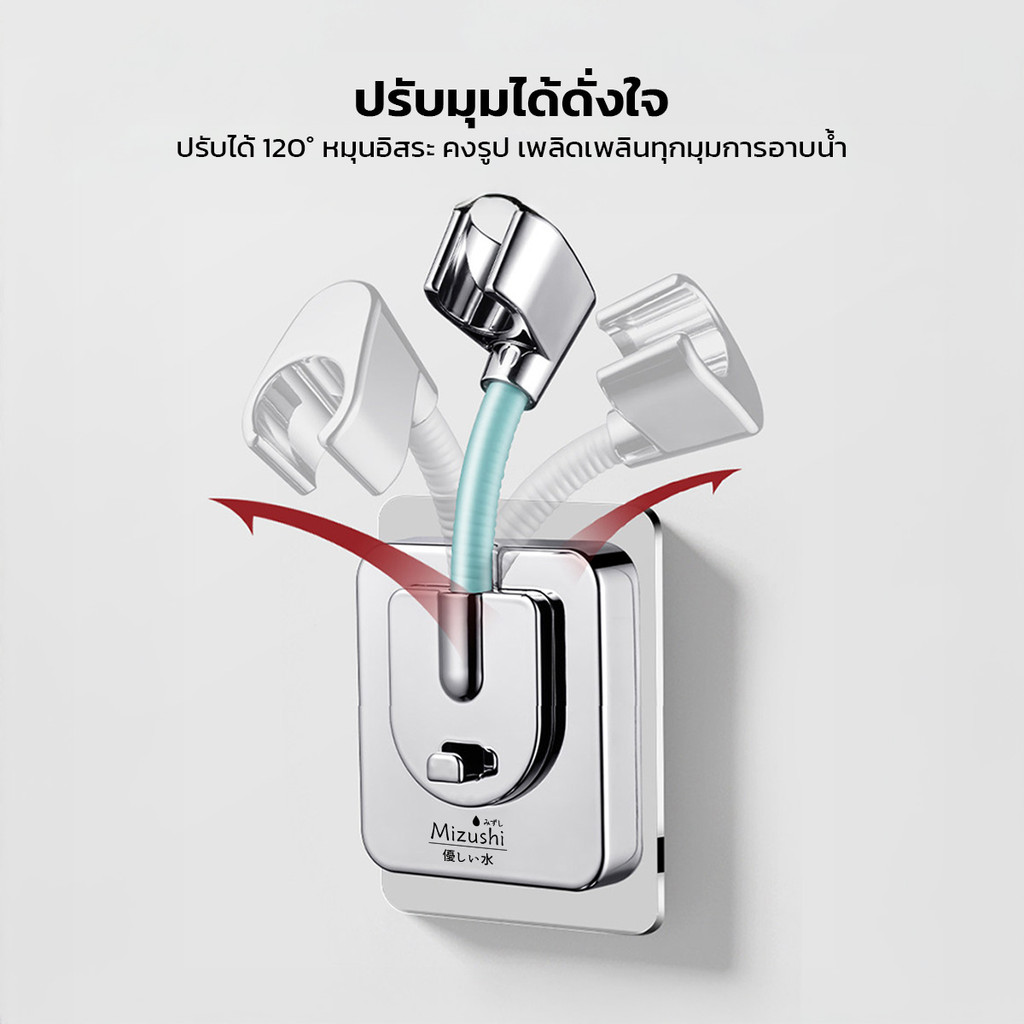 ที่วางฝักบัวแบบปรับได้ 120องศา ติดตั้งง่าย ไม่ต้องเจาะผนัง เหมาะสำหรับห้องน้ำ ใช้งานได้กับฝักบัวทั่วไป