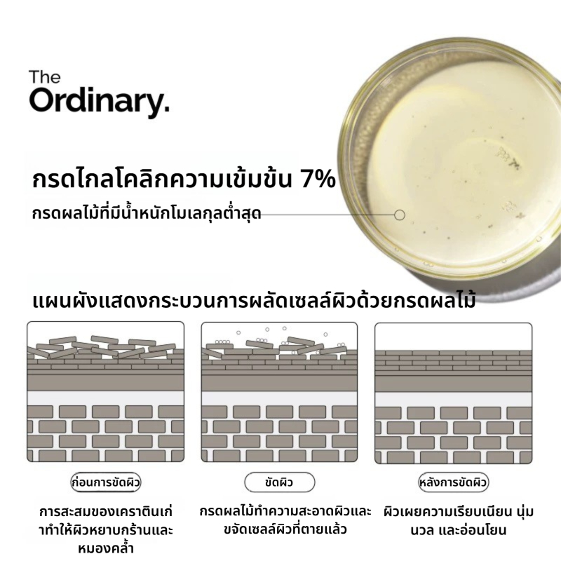 โทเนรทวามสะาดวน้า The Ordinary 7% Glycolic Acid มีส่วผสมของกดไกลโลก ช่วยปสภพผิว กระชบรูขุขน แลให้ควา