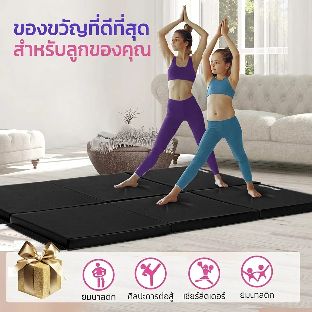 เสื่อโยคะ เสื่อโยคะพับได้ 3 ส่วน เบาะออกกำลังกายหนา 5 ซม. มีสายหิ้ว พกพาสะดวก
