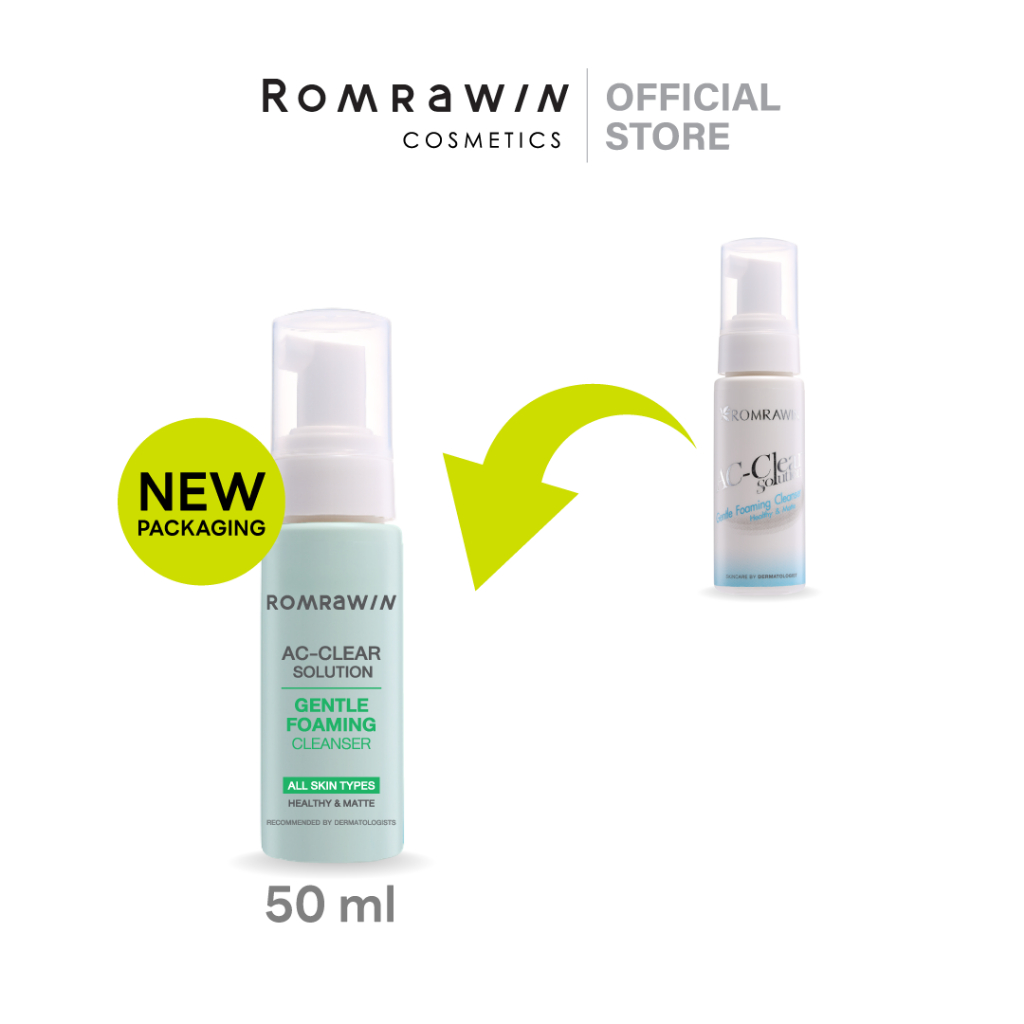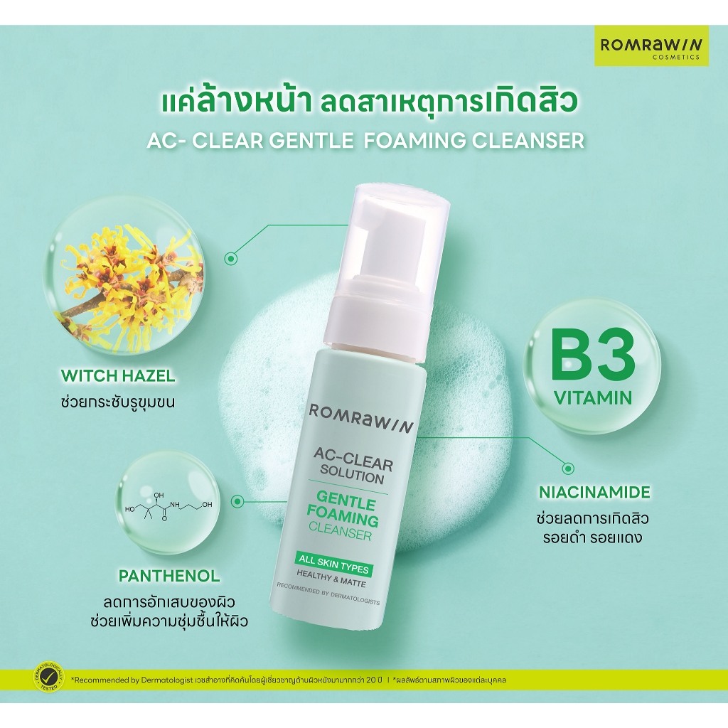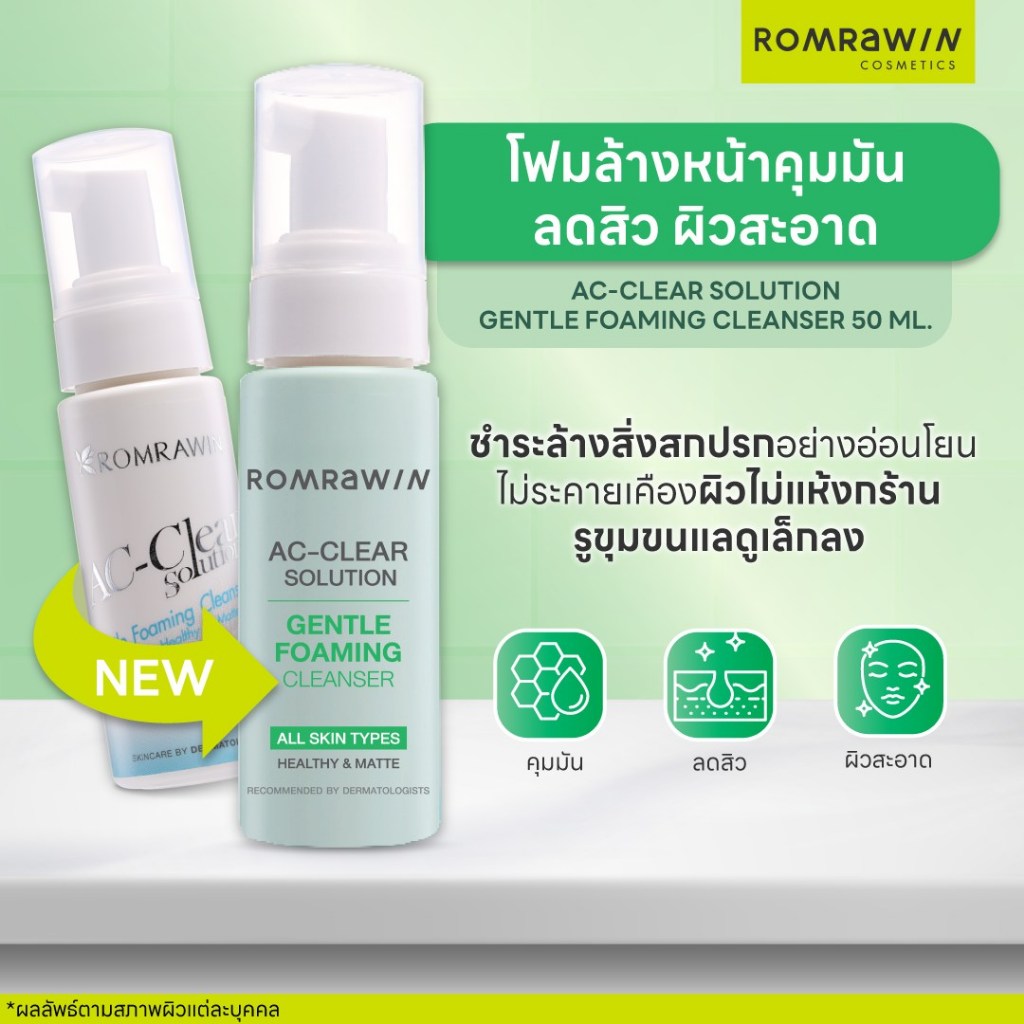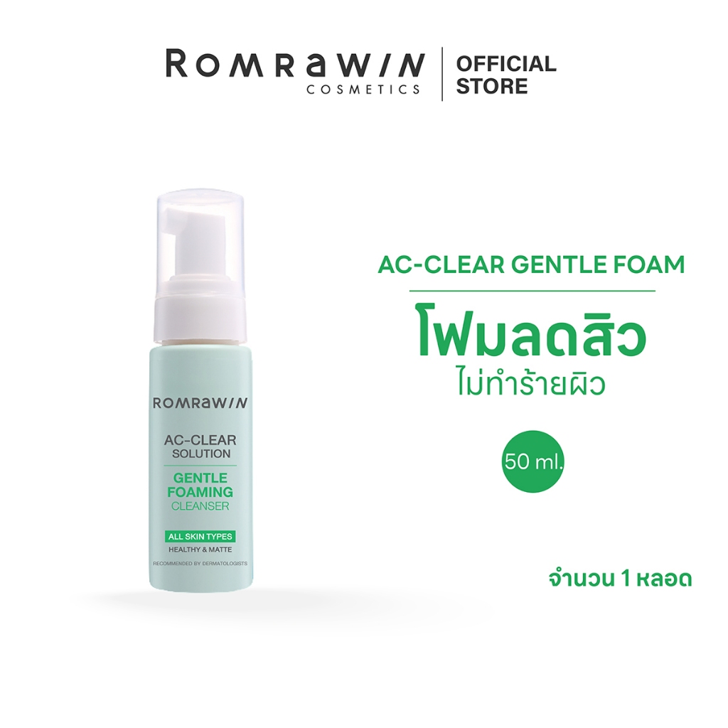 Romrawin Ac Clear Gentle Foaming Cleanser 50 ml.โฟมล้างหน้าลดสิวอักเสบ สิวอุดตัน อ่อนโยนต่อผิว