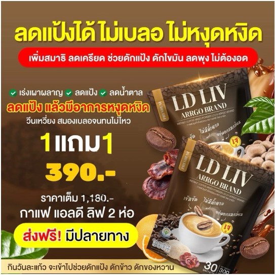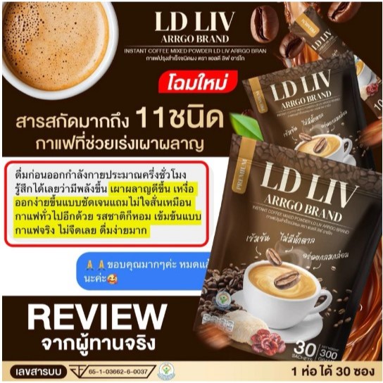 กาแฟดูแลตับ LD LIV อร่อย ทานง่าย เร่งเผาผลาญ ลดแป้ง ลดน้ำตาล ลงพุง ท้องอืด สายสูบ ปาร์ตี้ ดูแลดับ น้ำตาลสูง ไขมัน