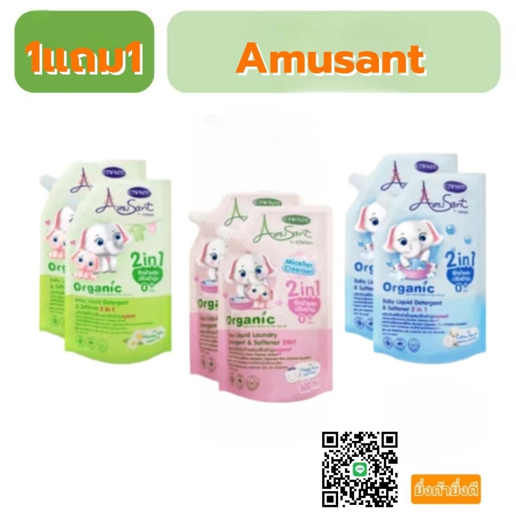 า Amusant ซื้อ 1 แถม 1 น้ำยาซักผ้าสำหรับเด็ก ผสมปรับผ้านุ่ม 2 in1 สูตรออร์แกนิค ขนาด 600 มล. อมูซองต์