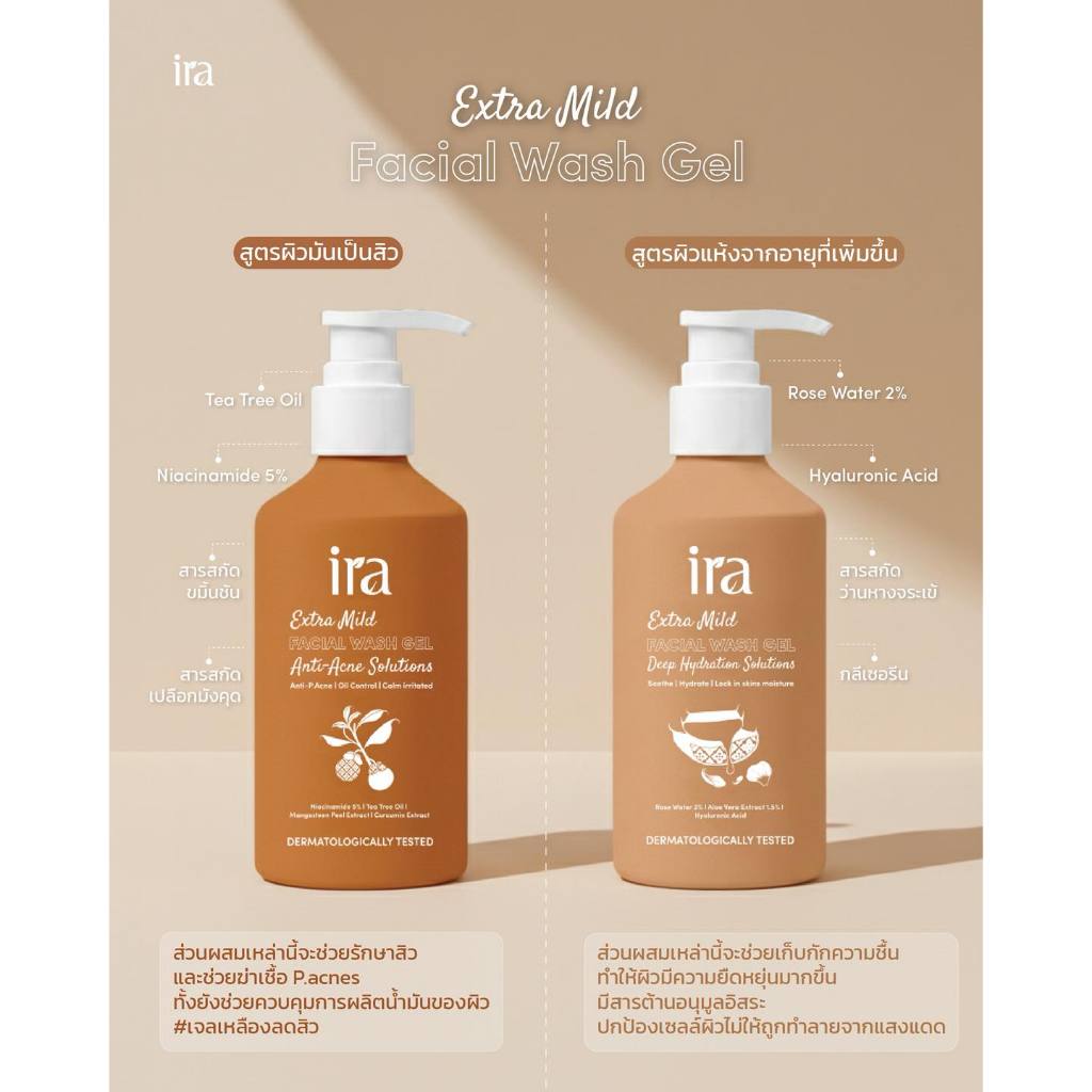 New Package Ira Facial Wash Gel เจลล้างหน้าลดสิว เจลเหลืองลดสิว 250ml