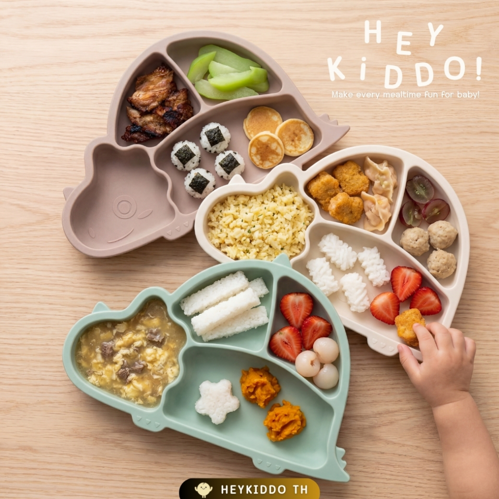 HeyKiddo: Little DINO Suction plate ðĒ āļāļēāļāļāļēāļāļāđāļāļāļđāļāđāļāđāļāđāļŠāļēāļĢāđ 4āļāđāļāļāđāļāđāļ āļŠāļģāļŦāļĢāļąāļāļ§āļąāļĒ BLW - BPA FREE āļ§āļąāļĒ8m+