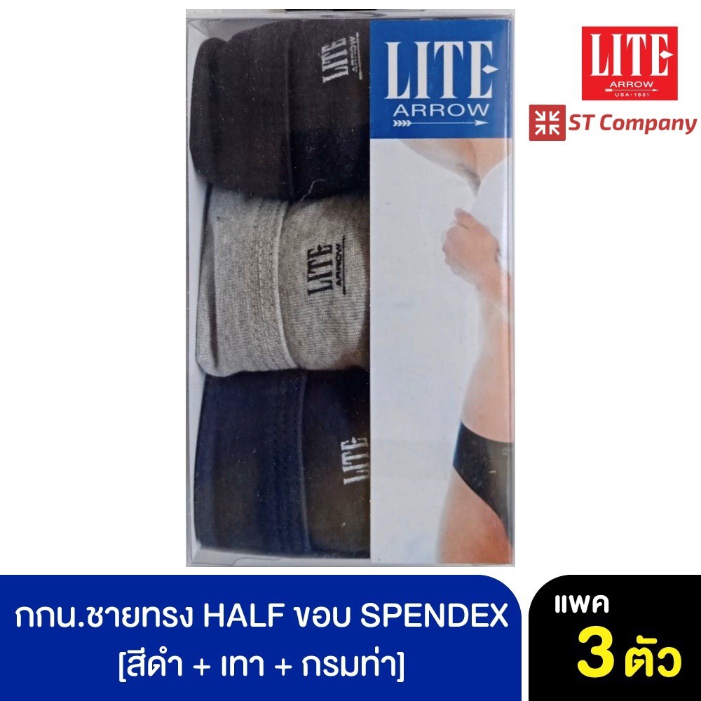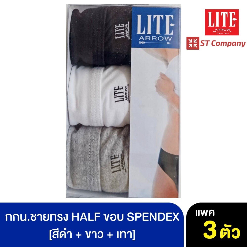 ARROW LITE ทรง HALF ขอบ SPENDEX สีขาว สีผสม (3 ชิ้น) Size M L XL แอร์โรว แอโรว กางเกงใน กางเกงในชาย กกน. ชาย