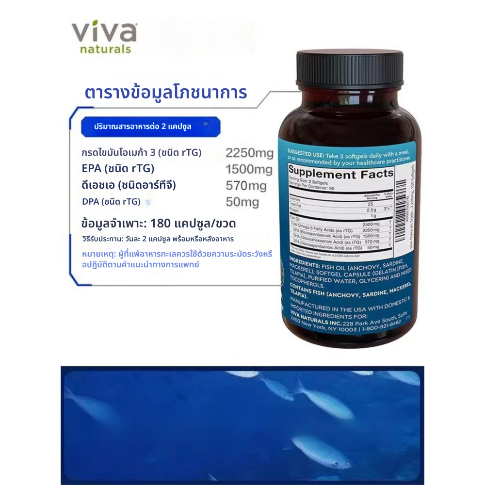 Viva Naturals Triple Strength Omega 3 Fish Oil Supplement 2500 mg Fish Oil with Re-Esterified 180 Softgels Exp;10/2028