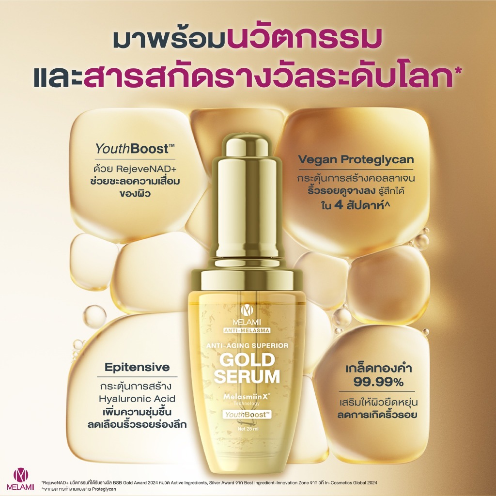 เซรั่มทองคำย้อนวัยผิวอ่อนเยาว์ Melamii Anti-Aging Superior Gold Serum 25ml