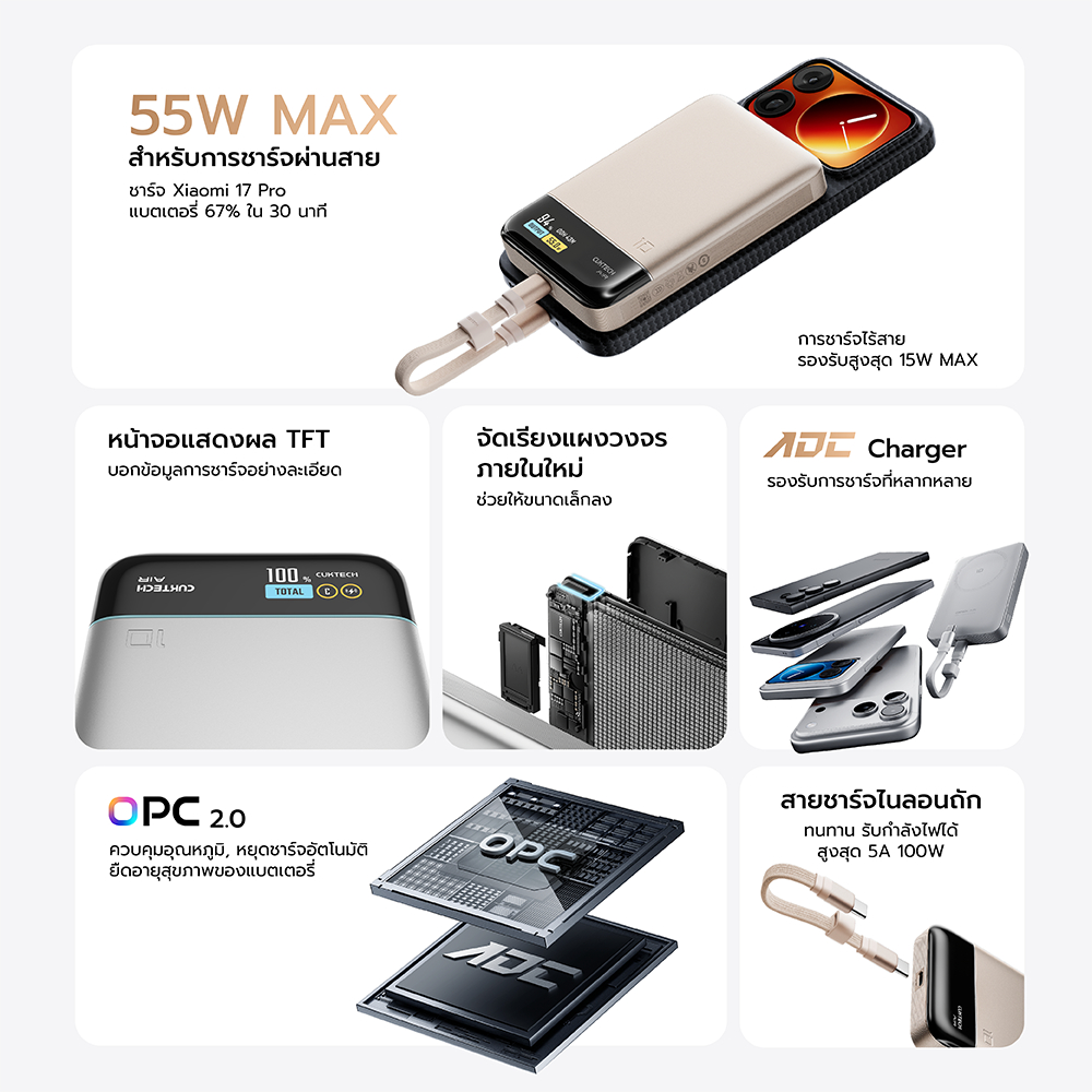 [ลดเหลือ 1499] CUKTECH WPB100P Powerbank แบตสำรอง CCC ชาร์จไร้สาย 10000mAh ชาร์จผ่านสายกำลังไฟสูงสุด 55W -1Y