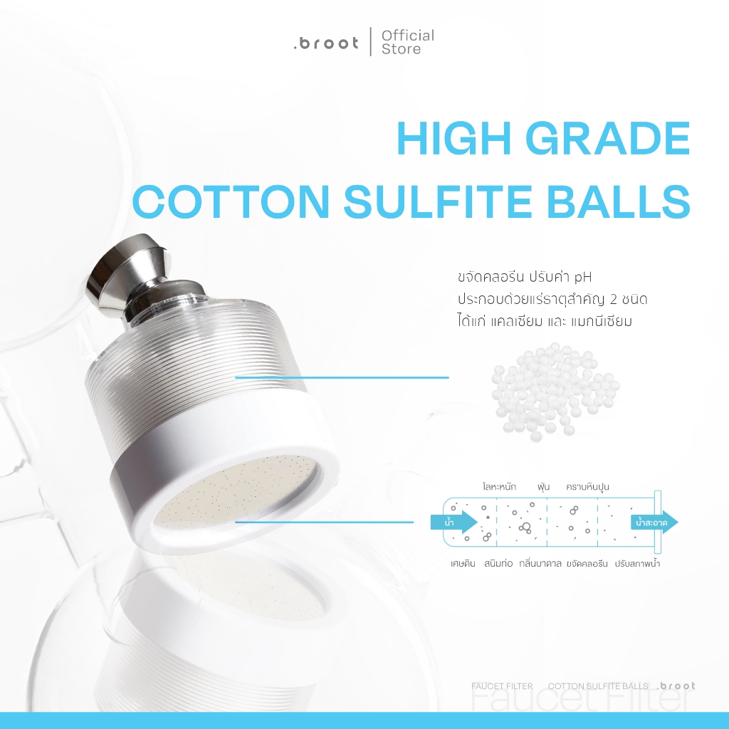 Cotton + Sulfite Balls ไส้กรองฝ้ายเกรดพิเศษผสานนวัตกรรมแคลเชียมซัลไฟต์บอล (ใช้สำหรับ Face Wash Faucet Filter) .broot