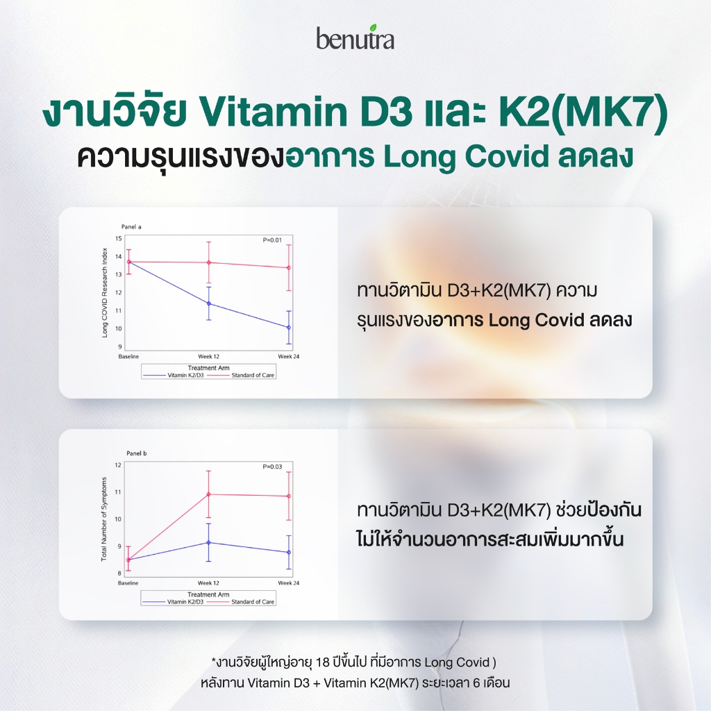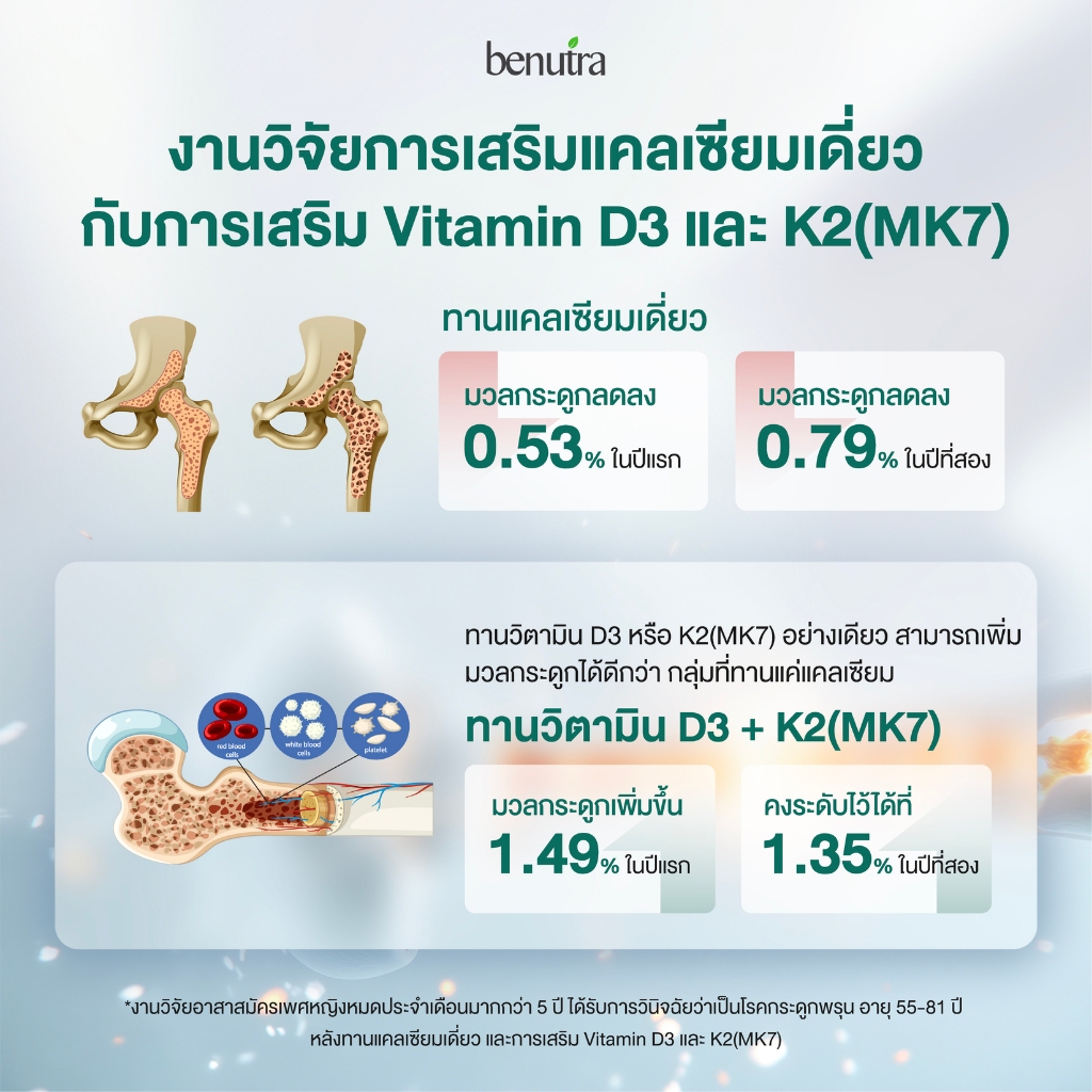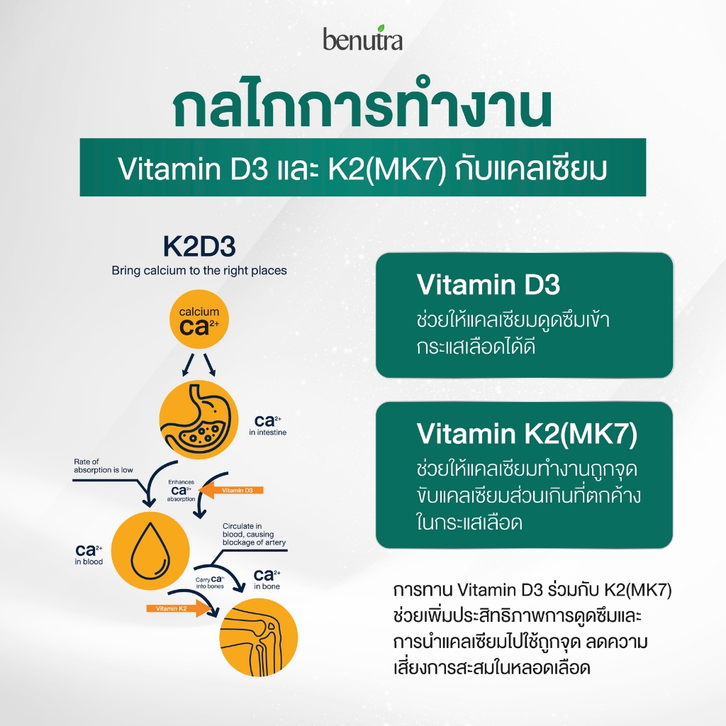 (D3+K2 เต็มโดส) Benutra D3K2+ วิตามินบำรุงกระดูก D3 600 IU+K2(MK7) 75 mcg + Beta-Carotine + VitE