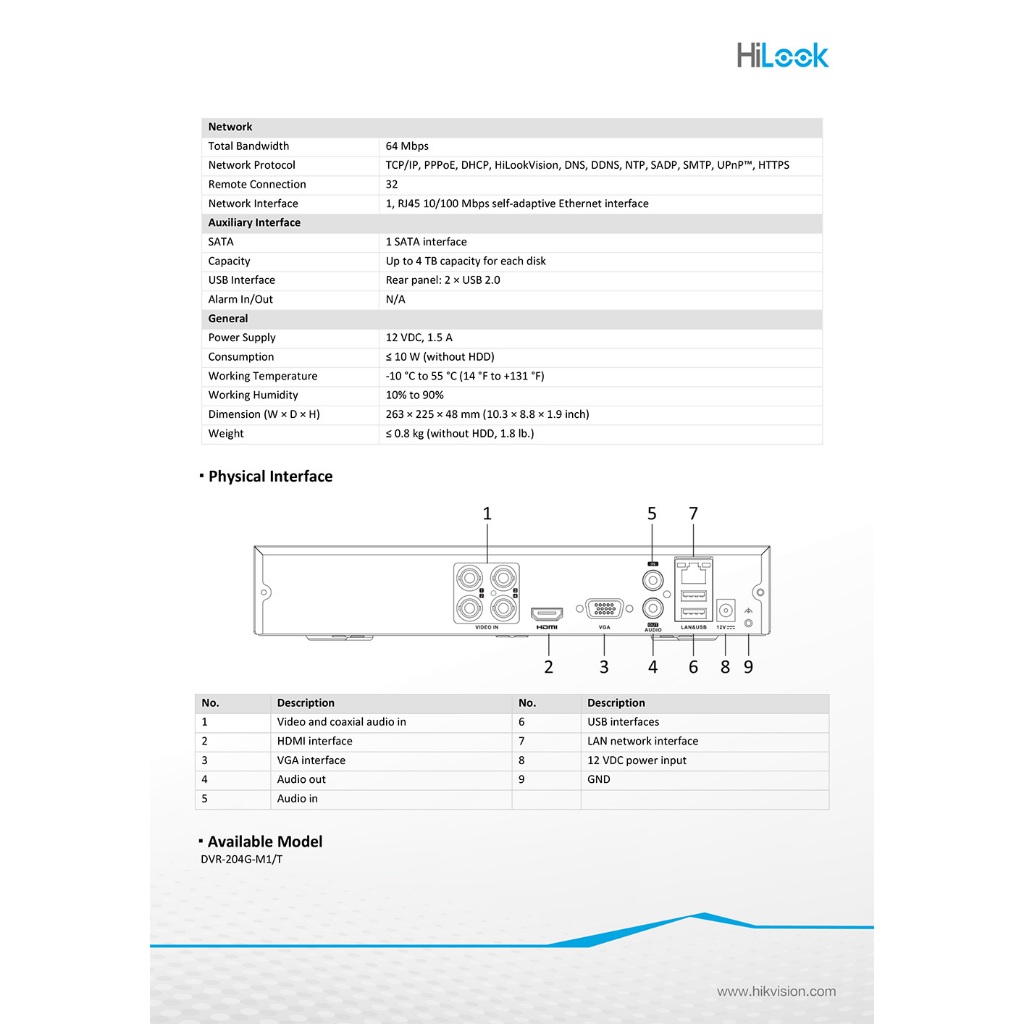 HILOOK DVR-204G-M1/T DVR 4CH เครื่องบันทึกวงจรปิด HD รองรับกล้องสื่อสารสองทาง 2-Way Audio