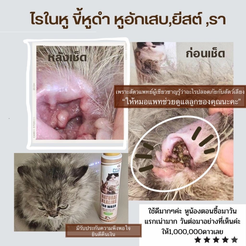 Petsmile น้ำยาเช็ดหูแมวสูตรสัตวแพทย์ (Doctor Chopetch) แก้ไรหู ขี้หูดำยีสต์เชื้อราลดกลิ่นเหม็นออร์แกนิกไม่แสบ100ml