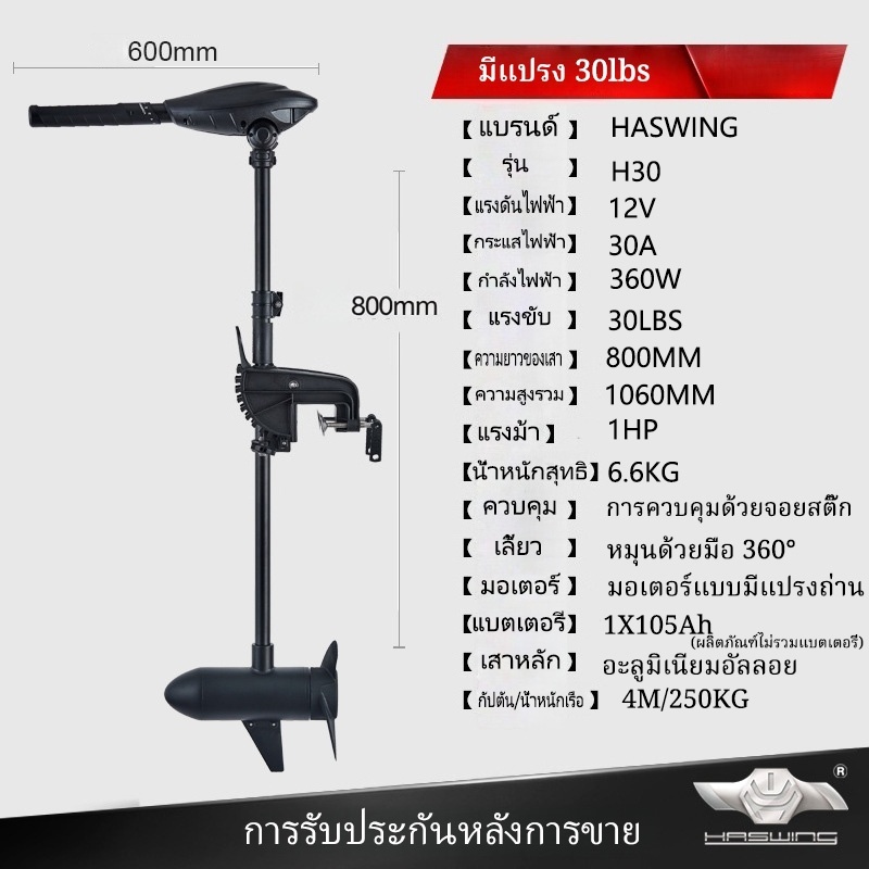 【เหมาะสำหรับเรือขนาด 4 เมตร/น้ำหนักไม่เกิน 250 กก.】มอเตอร์ไกด์ HASWING ใบพัดเรือไฟฟ้า 30lbs มอเตอร์ไกด์ ใช้กับเรือได้ทุก