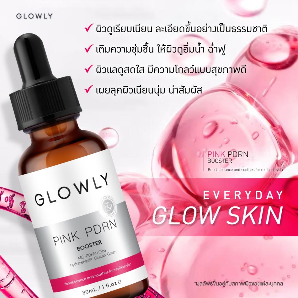 ใหม่ GLOWLY เซรั่มบูสต์ผิวโกลว์ใส PINK PDRN Booster Serum 30 ml. เผยลุคผิวเนียนนุ่ม น่าสัมผัส