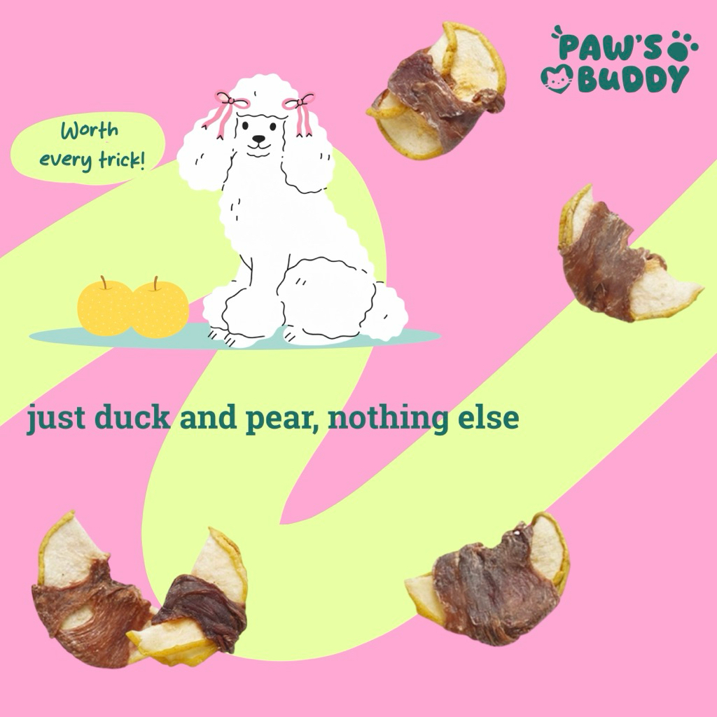 ขนมสุนัข เป็ดพันสาลี่ Paw’s Buddy ขนมสุนัขเกรดคนทาน 60g