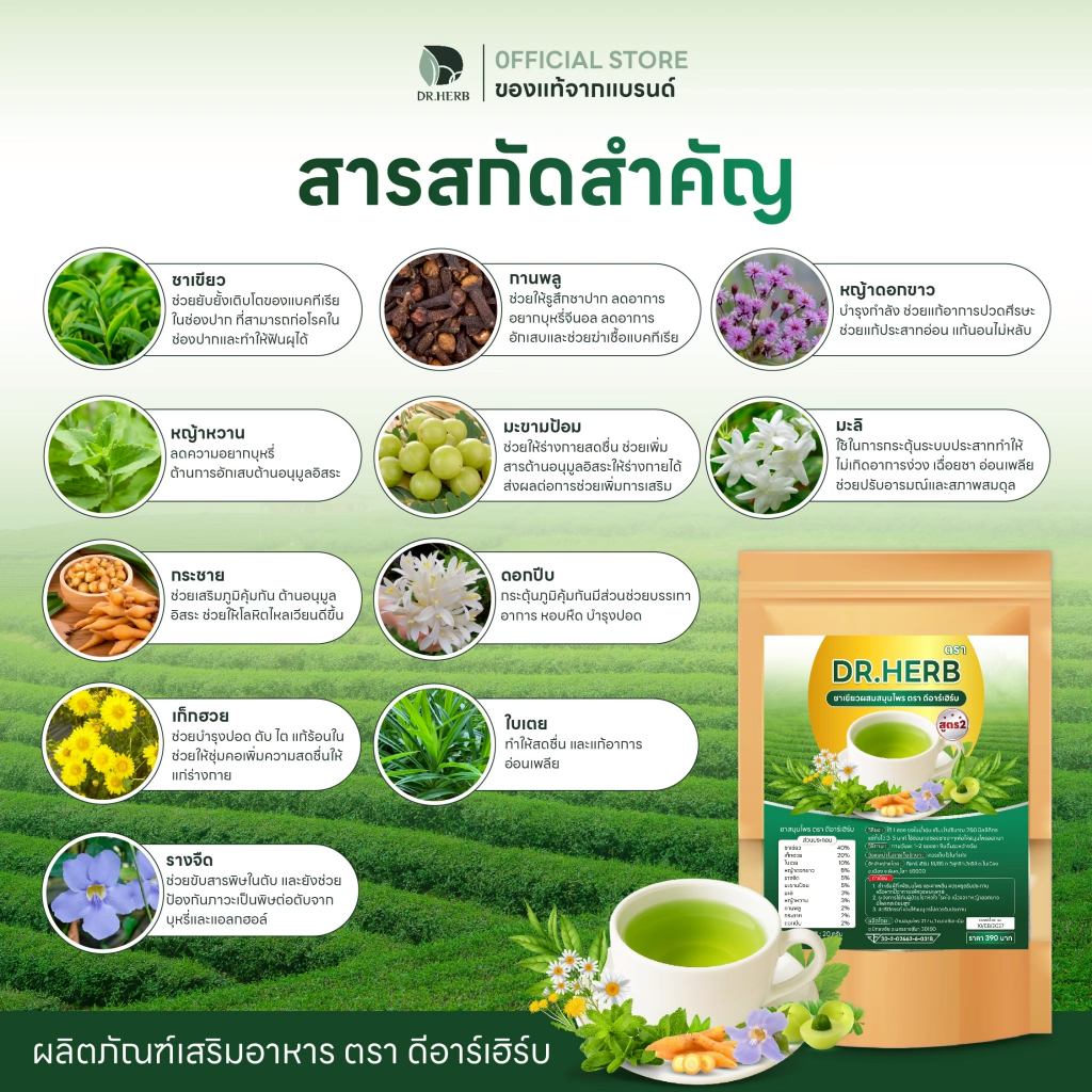 ชาเลิกสูบ หญ้าดอกขาว สูตรขายดี ลดความอยาก Dr.Herb ชาปีดอด สูตร 2 ชาเขียว 1 ห่อ 10 ซองชา