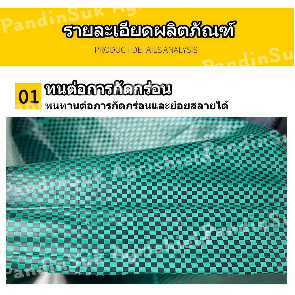 ผ้าพลาสติกสีเขียวสำหรับกำจัดวัชพืช มีความทนทานและมีประสิทธิภาพในการควบคุมวัชพืช มีขนาด 1x10 2x10 3x10 และขนาดอื่นๆ