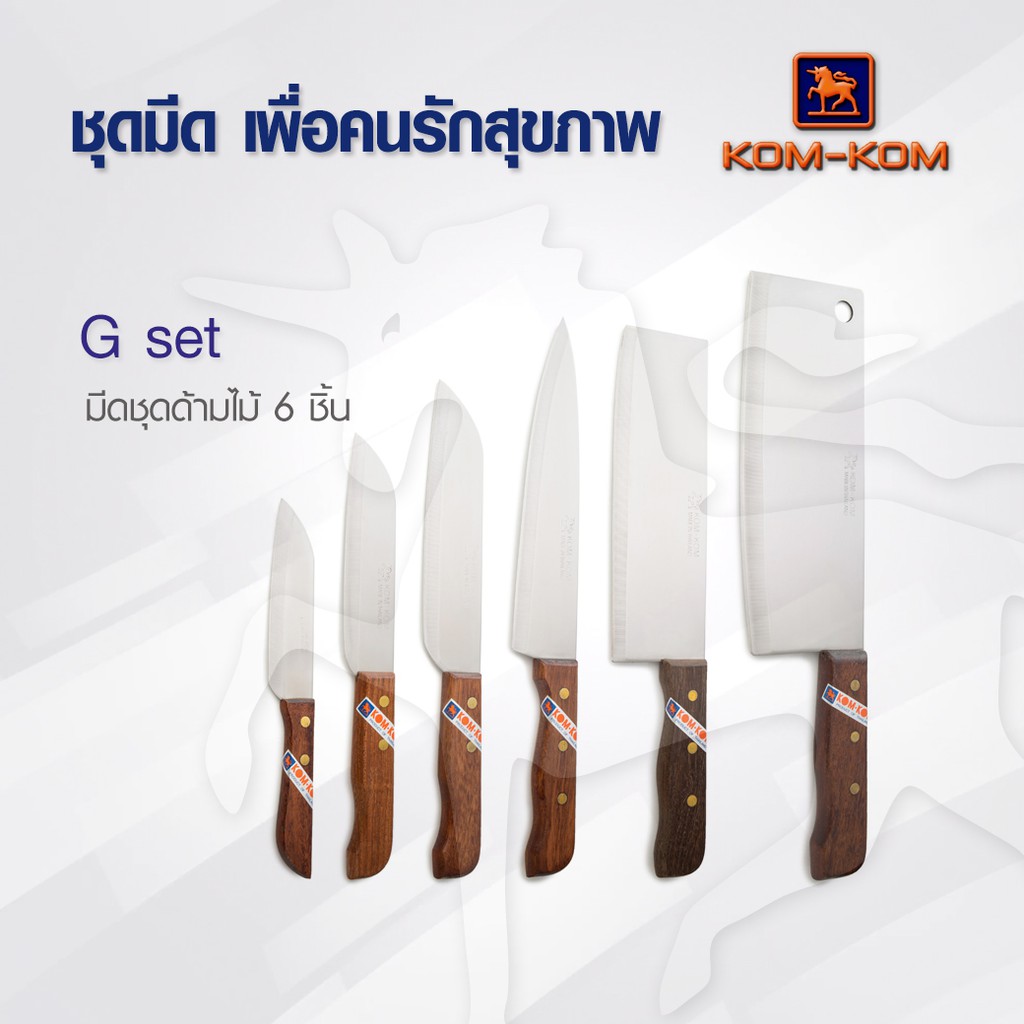 KOMKOM G SET ชุดมีดทำครัว ด้ามไม้ 6 ชิ้น คมคม