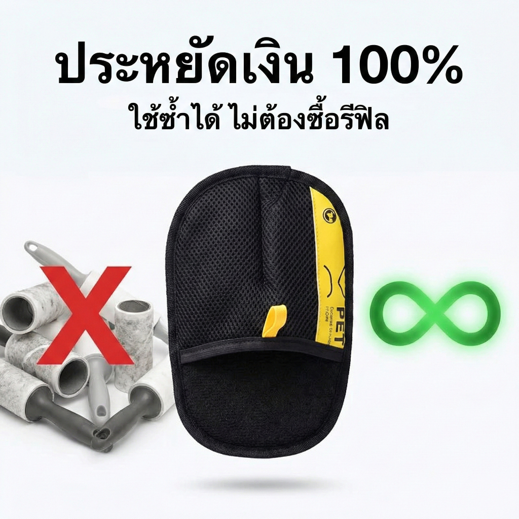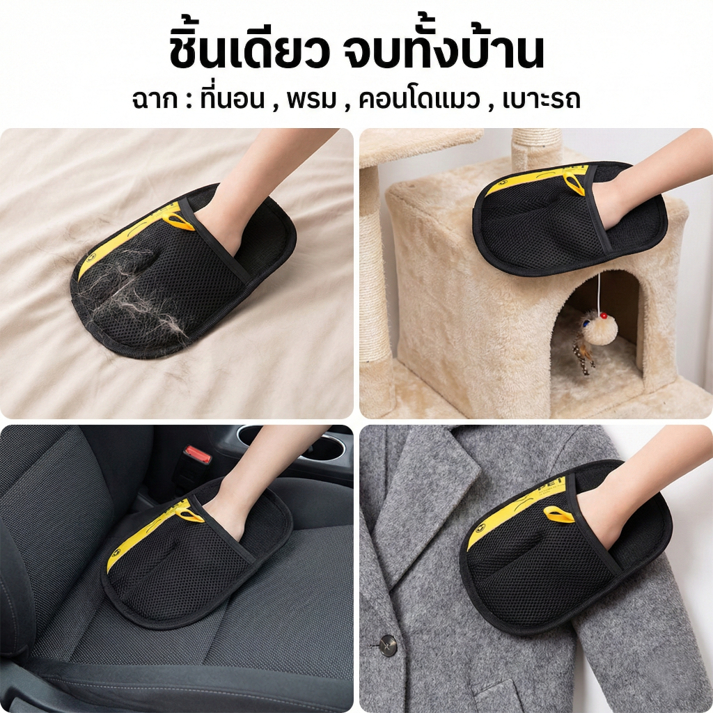 Petclear ถุงมือแปรงขนแมว แปรงขนสุนัข ที่แปรงขนสัตว์เลี้ยง ถุงมือกําจัดขนไฟฟ้าสถิตสําหรับสัตว์เลี้ยง