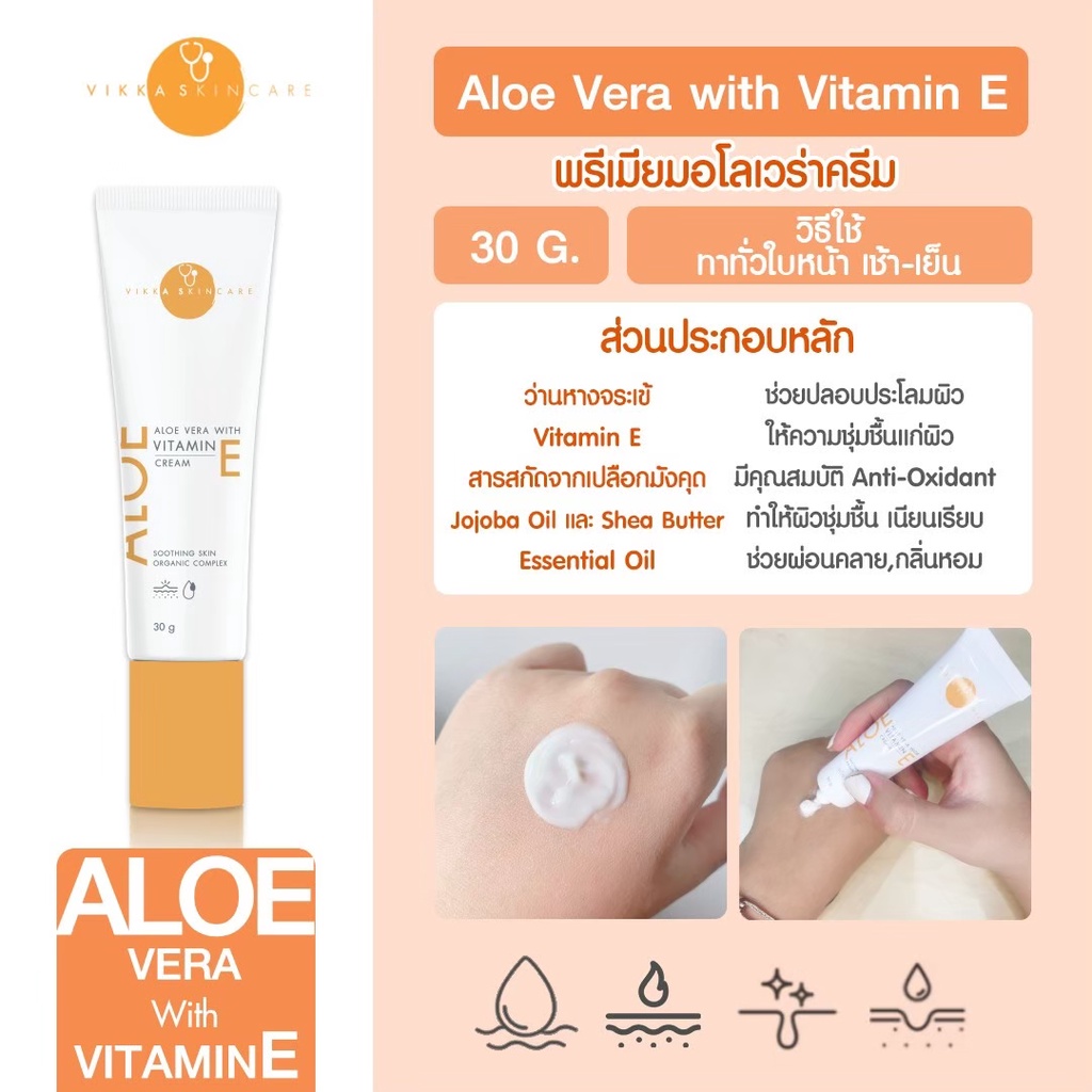 VIKKASKINCARE Aloe with VitaminE Cream 30g อโลเวร่าหมอกุ้ง ครีมบำรุงผิวหน้า สำหรับคนเป็นสิว