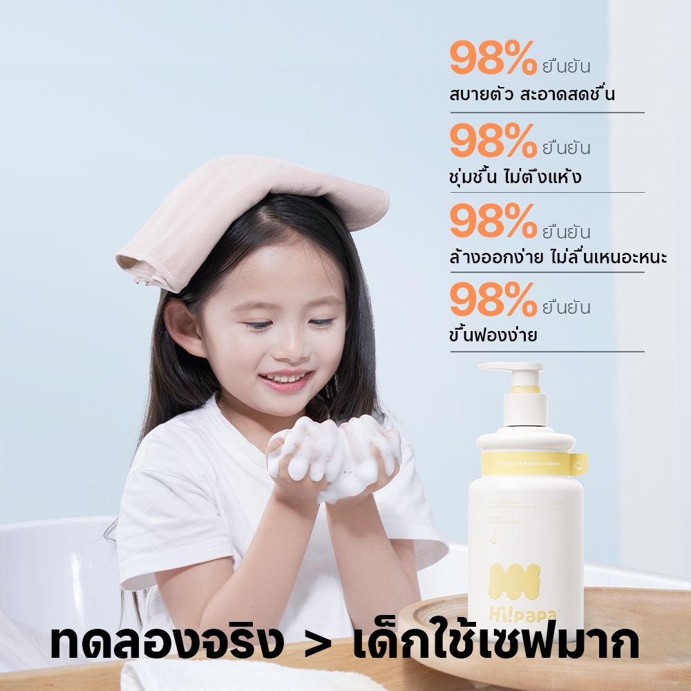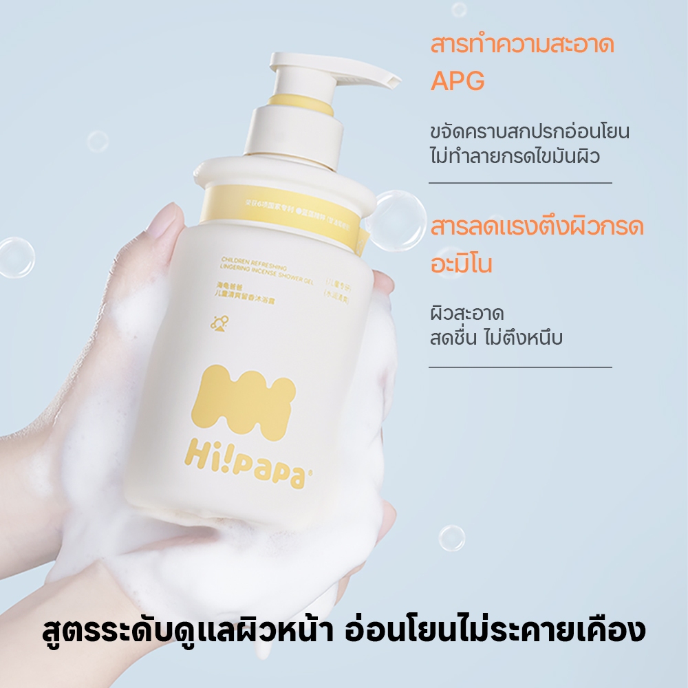 Hi!papa ครีมอาบน้ำเด็ก pH5.5 ไม่แสบตา กลิ่นดอกคาเมลเลียหอมสดชื่น อ่อนโยน ผิวชุ่มชื้นสบายตัว 500ml