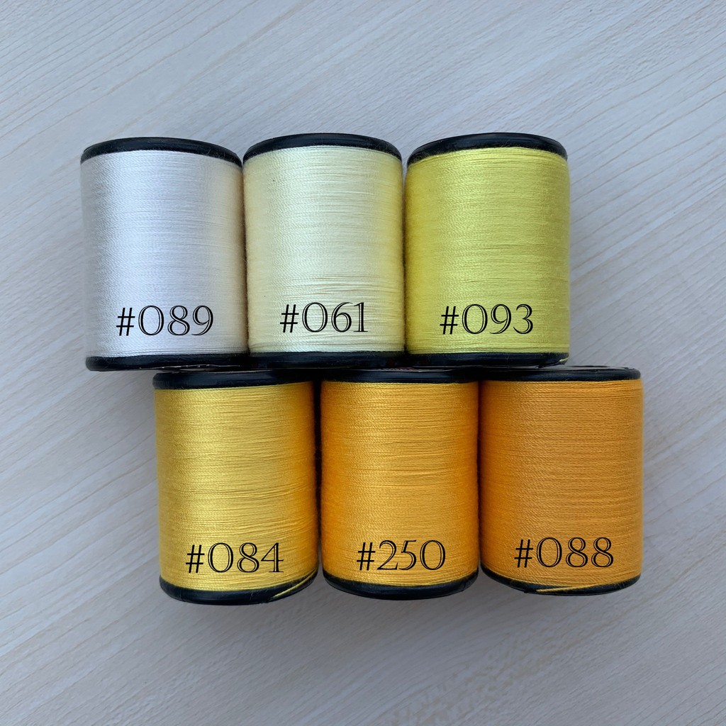 ด้ายเย็บผ้า ด้ายสีเหลือง เฉดเหลือง ตราหัวเสือ ด้ายเย็บผ้าหลากสี ด้ายลูกล้อ wop DIY งานฝีมือ เย็บมือ เย็บจักร เบอร์60 สี
