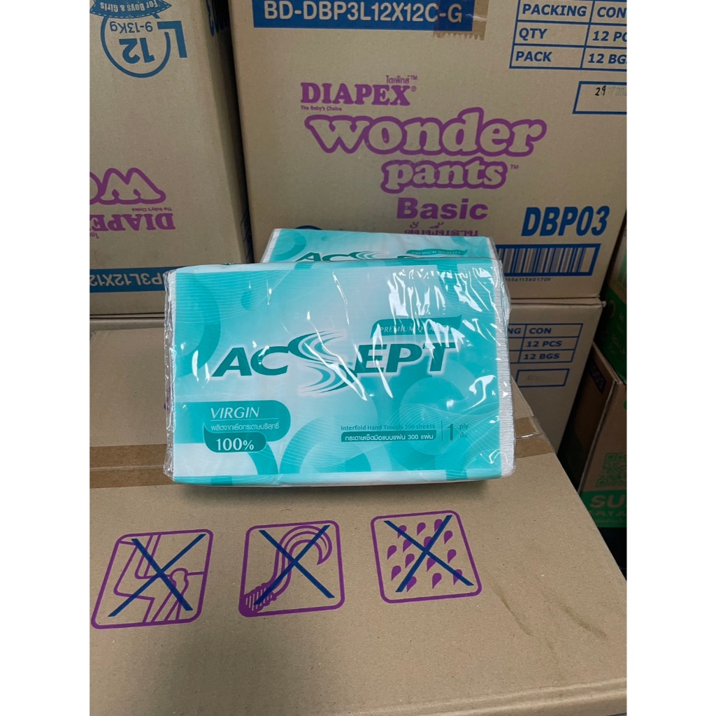 !!ยกลัง!! ลังละ 24 ห่อ กระดาษเช็ดมือ หนา 1 ชั้น ห่อละ 300 แผ่น รวม 7,200 แผ่น ยี่หอ ACSEPT พร้อมส่ง